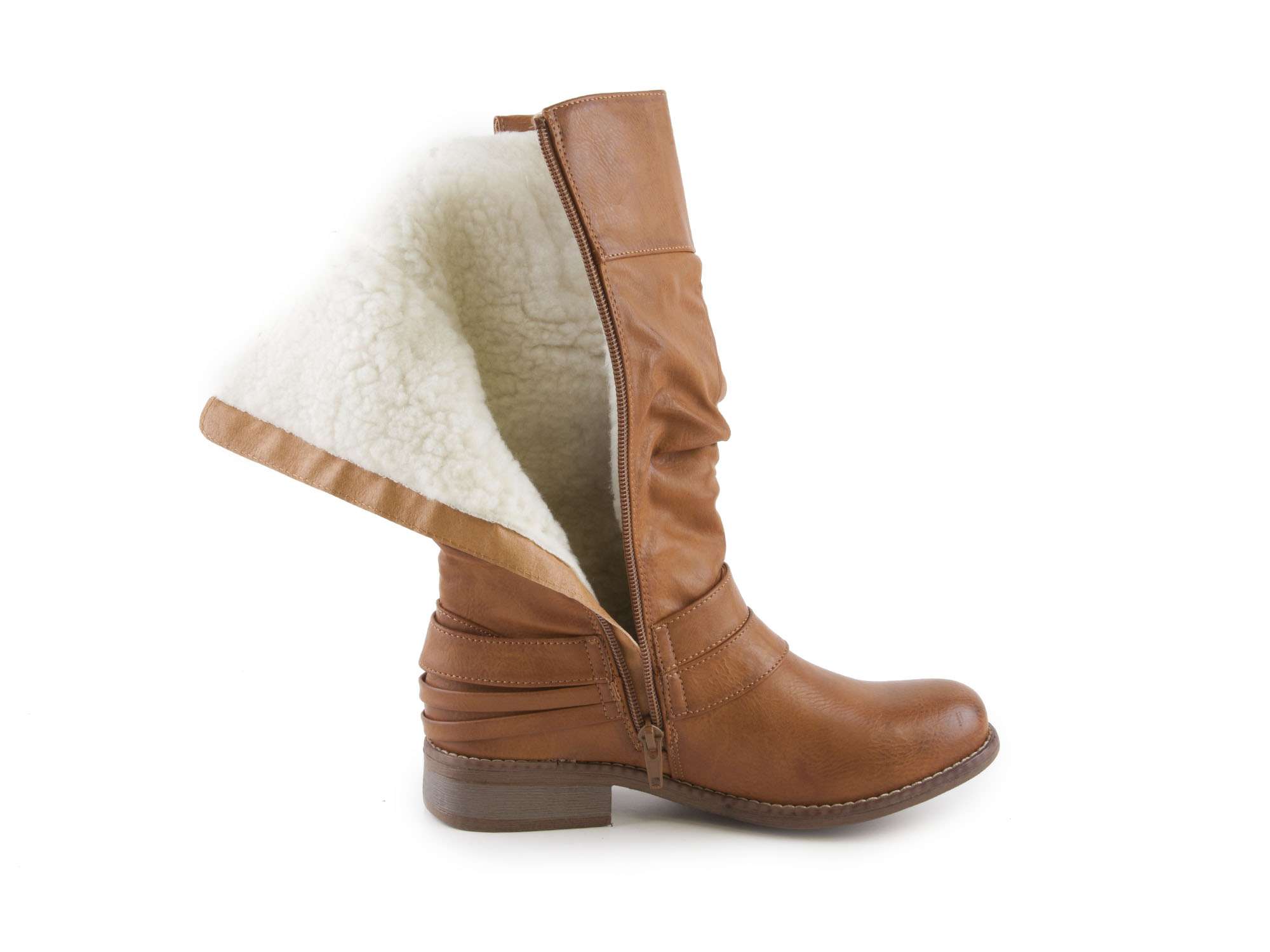 • detail Dámské zateplené a zvrásněné polokozačky šíře G 95678-22 / hnědá