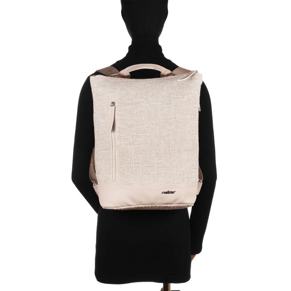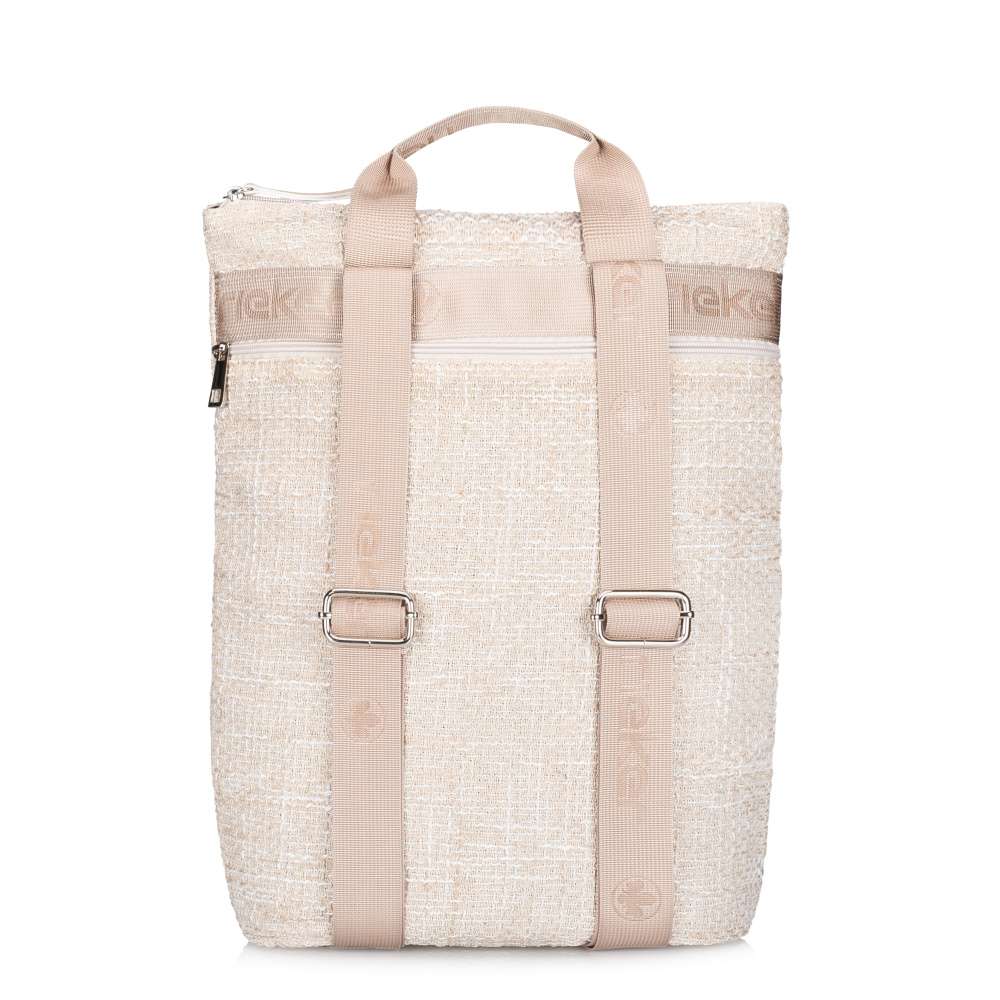 Tento batoh RIEKER v sobě spojuje moderní design a praktické využití, které ocení každá žena s citem pro detail. Zaujme strukturovaným materiálem svršku v působivé kombinaci s hladkým materiálem ve spodní části batohu, tato kombinace dodává originální vzhled a stříbrné logo značky podtrhne prémiový charakter modelu. Kromě atraktivního designu nabízí batoh také praktická řešení pro každodenní použití. Přední kapsička na zip vám umožní mít vše důležité vždy po ruce a zadní kapsa poskytuje diskrétní místo pro vaše cennosti. Hlavní prostor uzavíraný zipem je promyšleně vybaven vnitřními přihrádkami, díky kterým si udržíte dokonalý pořádek. Pohodlné, délkově nastavitelné popruhy se přirozeně přizpůsobí vašemu tělu a umožní příjemné nošení během celého dne, zatímco horní úchyt dodává batohu praktickou eleganci při nošení v ruce. Tento batoh je víc než jen doplněk – je to spolehlivý partner, který podtrhne váš styl a dodá vám jistotu, ať už vás den zavede kamkoli.