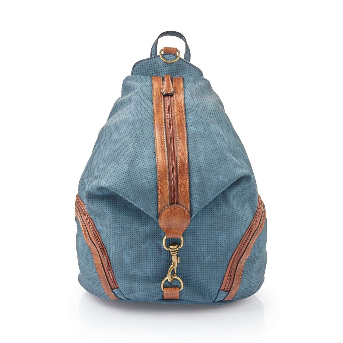 Tento modrý stylový batoh od značky RIEKER je perfektně propracovaný, má praktické boční kapsy. Dalším doplňkem je funkční karabina, jemná perforace a hnědá barva doladěna s batohem. Batoh je na zip, po jehož rozepnutí Vás mile překvapí nádherná podšívka a několik dalších kapes pro drobnosti. Má dva velikostně regulovatelné zadní popruhy, které si můžete nastavit dle svých představ. Bude Vašim výjimečným doplňkem k různým outfitům.