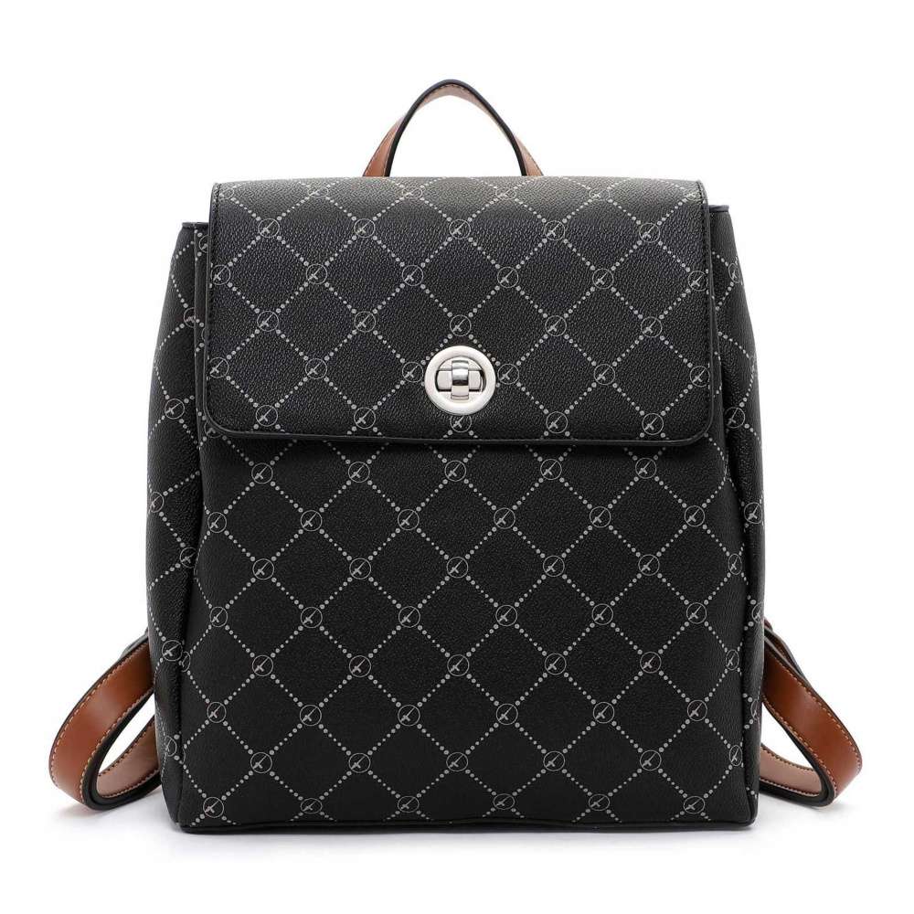 S tímto stylovým batohem budete mít vše, co potřebujete, jednoduše na ramenou. Je vyroben z jemného syntetického materiálu, uzavírá se na zámek. Po otevření klopy najdete v batohu několik panelů a kapes na zip, takže snadno udržíte pořádek ve Vašich věcech. Jedna kapsička na zip je také na vnější zadní straně. Díky pevnosti materiálu můžete v batohu bezpečně přenášet všechny cennosti. Ozdobný přívěsek s logem dodává extra akcent. Délku popruhů si můžete upravit dle Vašich potřeb, tašku můžete snadno uklidit pomocí poutka na zavěšení. Chystáte se na výlet s kamarádkou či na nákupy? Batoh je prostě fantastickým společníkem pro všechny možné scénáře. Rozměry: cca v 29 cm x h 12 cm x š 27 cm Vnitřní uspořádání: batoh je dělený