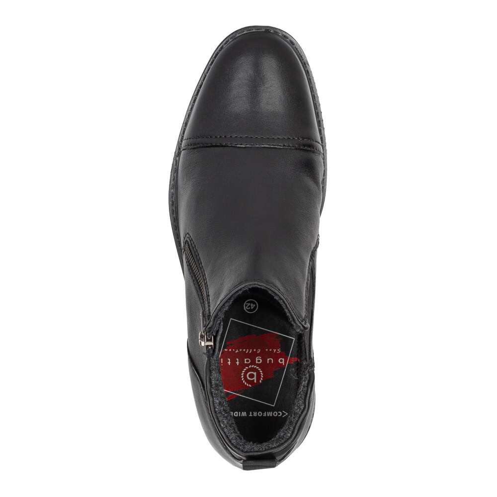 Kožené boty BUGATTI s jemným nádechem elegance jsou zdobené vytištěným logem značky a decentním prošitím. Nazutí usnadní boční zip a všitá gumička, která bude kopírovat Vaši nohu pro dokonalé pohodlí. Stélka je kožená a v přední části vytváří dostatek prostoru i pro širší chodidlo. Nadčasový vzhled okouzlí svou jednoduchostí, a přitom dodá každému Vašemu kousku oblečení ten správný punc originality. Technologie: Comfort Wide – tvar boty je přizpůsobený chodidlu pro vytvoření dostatečného prostoru v oblasti přední části chodidla.