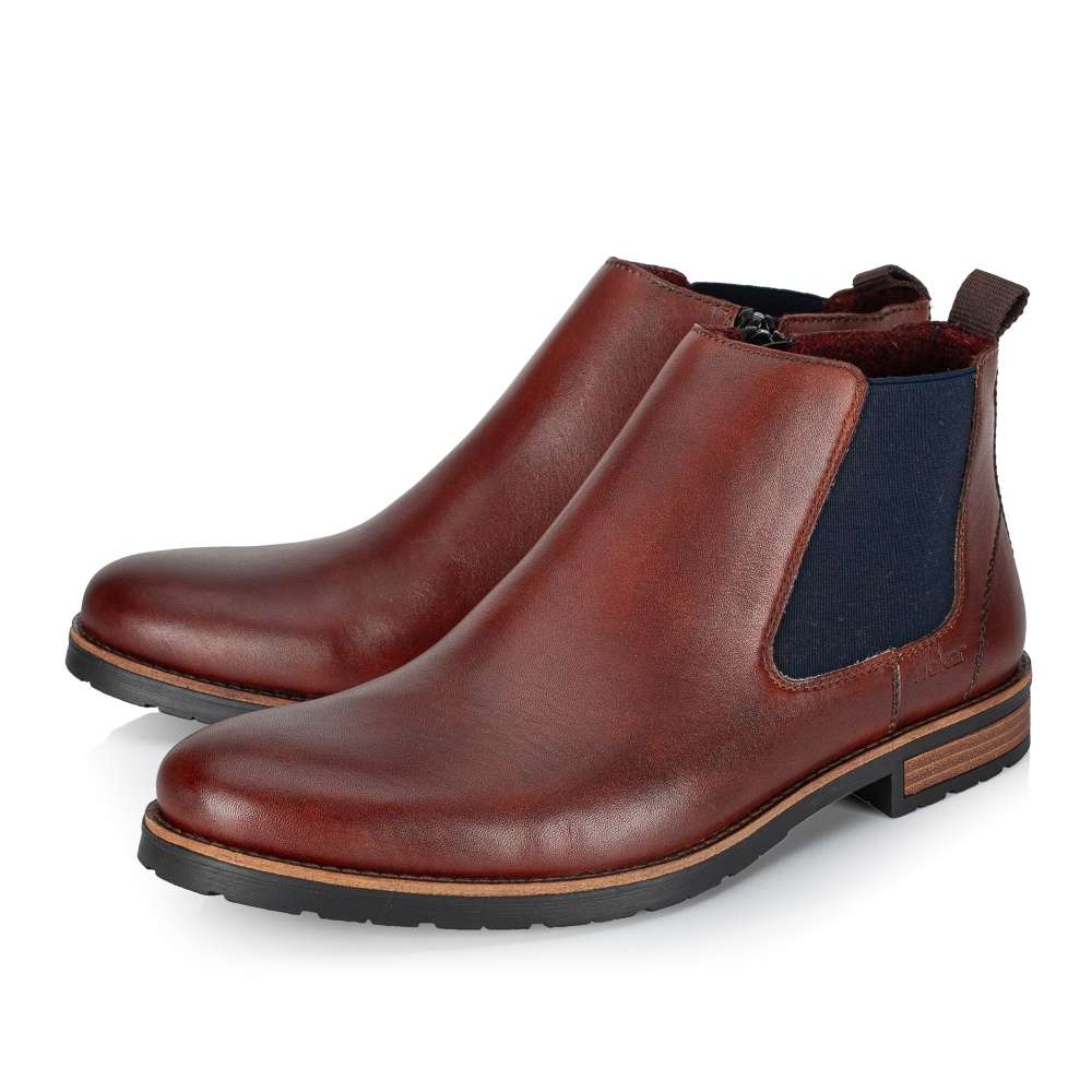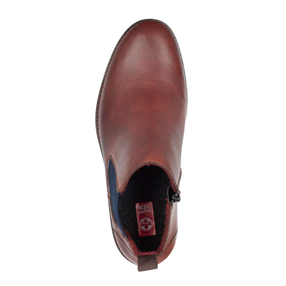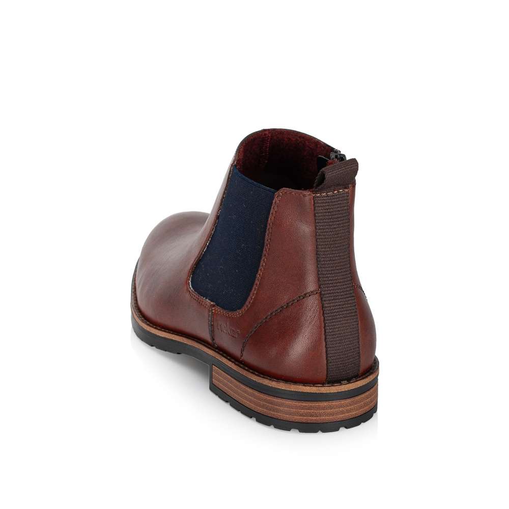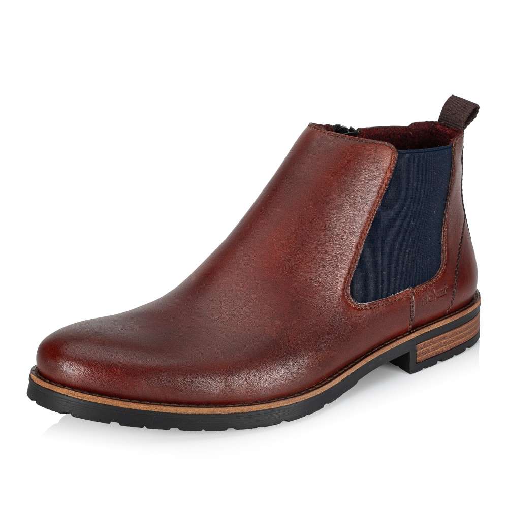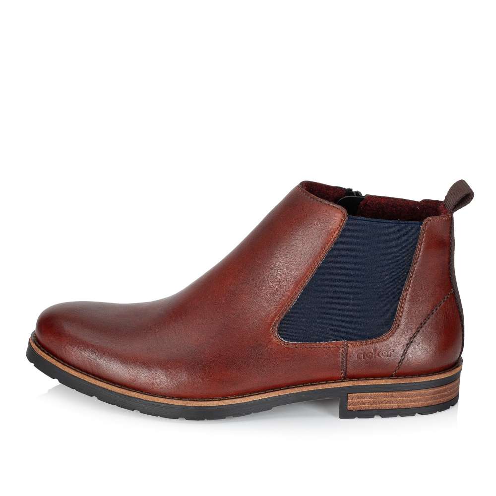 Pánský kotník hnědé barvy od značky RIEKER je vyroben z přírodní usně v hladkém provedení. Decentní prošití a ozdobná patní část zdůrazní elegantnost této obuvi. Vsazená guma z vnější strany, poutko při horním okraji a praktický zip usnadní obouvání. Měkká stélka a flexibilní podešev Vám zajistí pohodlí po celý den. Tento stylový model nesmí chybět ve vašem šatníku. Technologie: Antistress – podešev je díky této technologii lehká, flexibilní, absorbuje nárazy při došlapu a snadno se přizpůsobí každé noze.