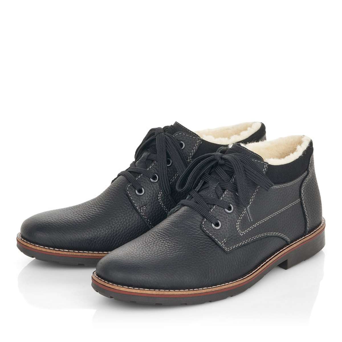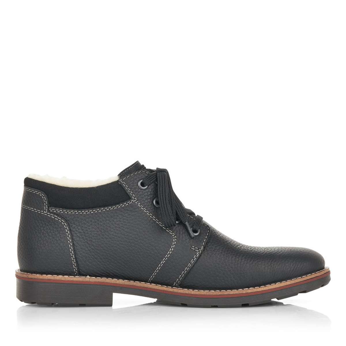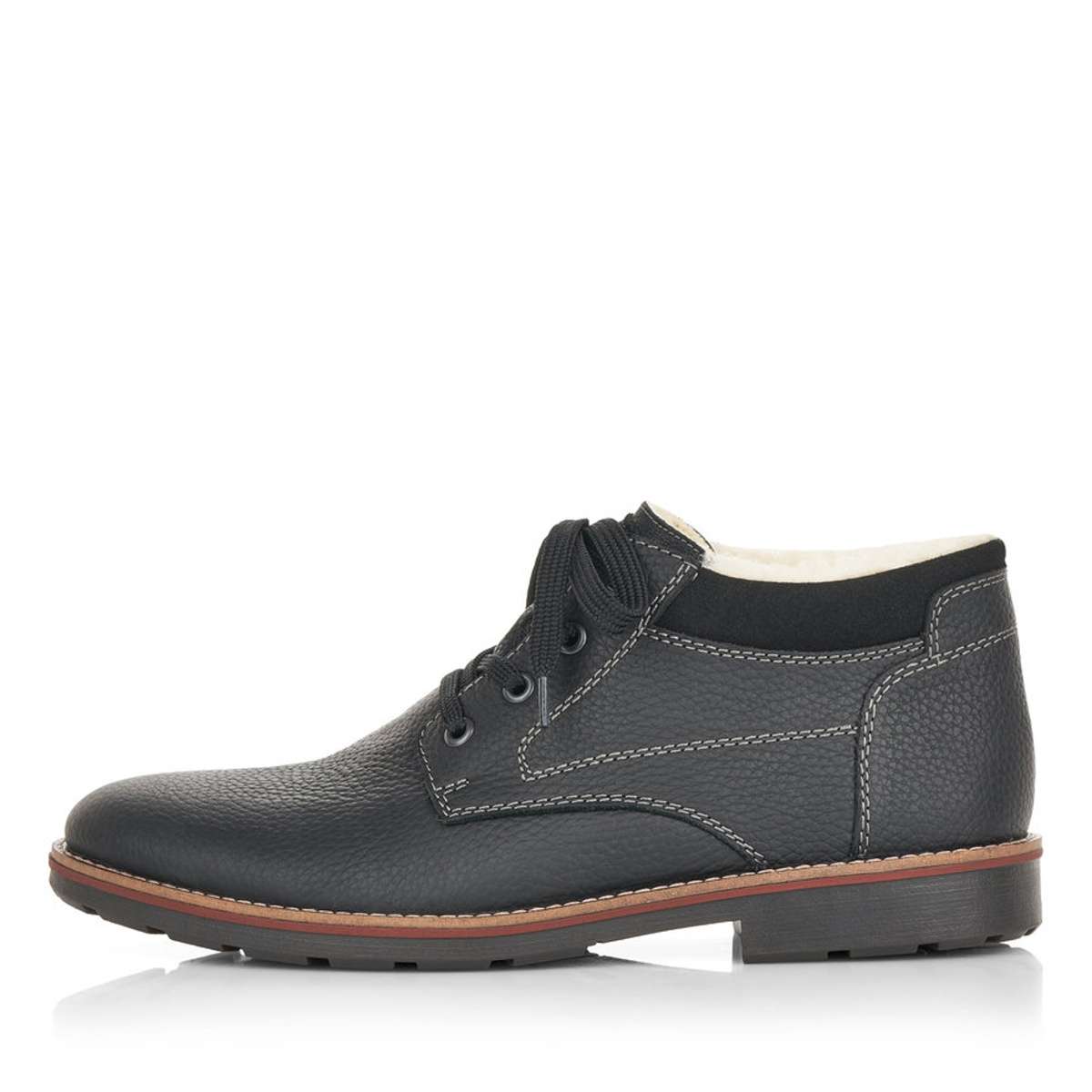 Stylová obuv od značky Rieker s kontrastně barevnou podešví a výrazným prošitím v krásné černé barvě. Tkaničkami na šněrování si obuv utáhnete přesně podle Vašich představ.