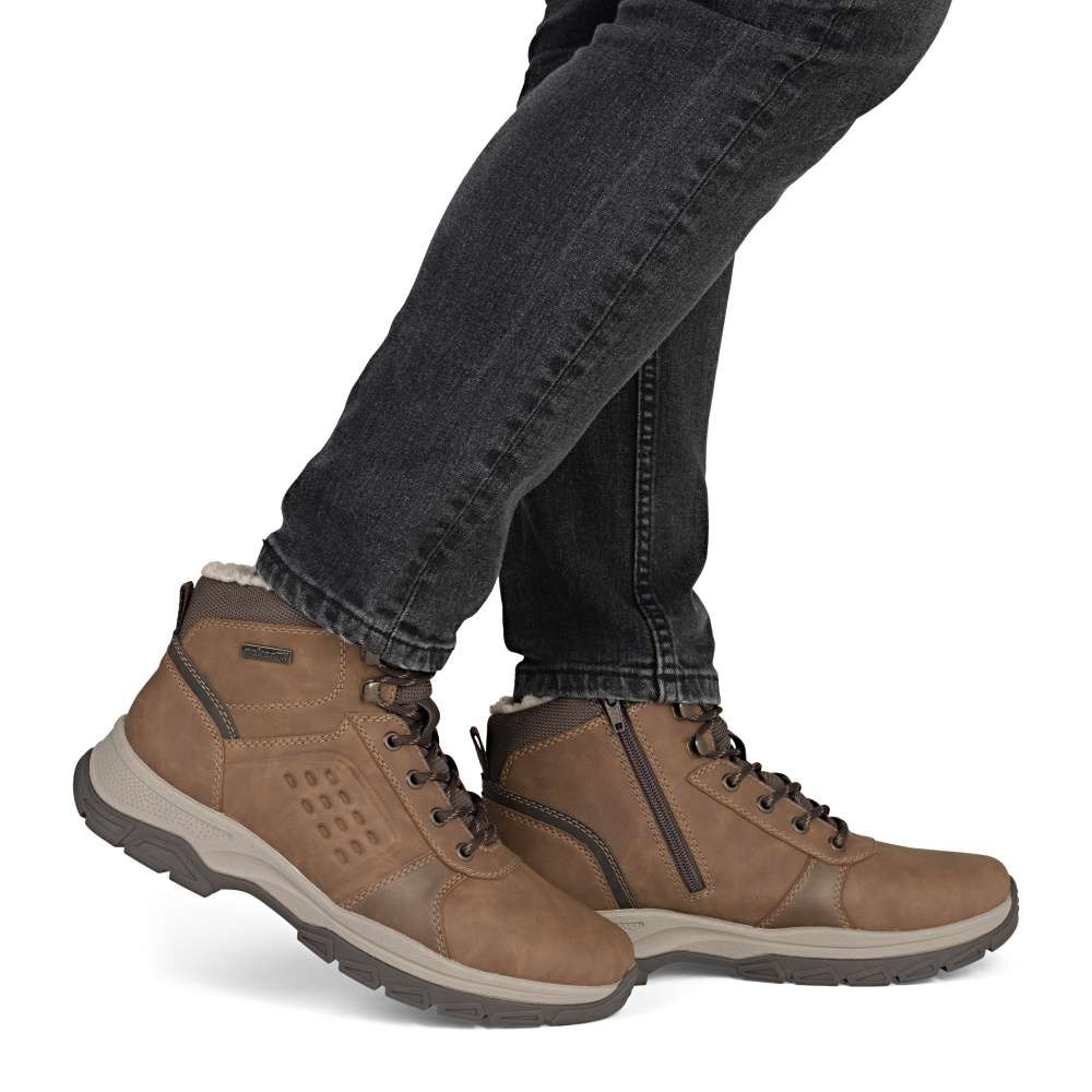 Tyto pánské zimní boty od značky RIEKER jsou ideálním společníkem do chladného počasí. Svršek z kvalitních a odolných materiálů je vybaven nepromokavou membránou, která spolehlivě ochrání vaše nohy před deštěm a sněhem. Pohodlné šněrování doplňuje boční zip, díky čemuž je nazouvání rychlé a snadné. Vnitřní zateplení pravou ovčí vlnou poskytuje vyjímečné teplo a příjemný pocit při nošení a vyjímatelná stélka se snadno přizpůsobí individuálním potřebám chodidla. Dokonalé zimní obutí je podtrženo designovou podešví tlumící nárazy při chůzi. Funkčnost, komfort a styl v jednom – přesně to, co od zimní obuvi očekáváte. Technologie: Antistress – díky čtyřem antistresovým vlastnostem – lehkosti, pružnosti, prostornosti a vynikající absorpci nárazů – vám boty RIEKER nabídnou komfortnější chůzi. Rieker TEX – funkční vrstva, díky které je bota nepromokavá a přesto prodyšná. EXTRA WIDE – boty jsou širšího střihu, tvar boty je přizpůsoben chodidlu pro vytvoření dostatečného prostoru v oblasti přední části chodidla. Tato bota je vybavena vyjímatelnou stélkou.