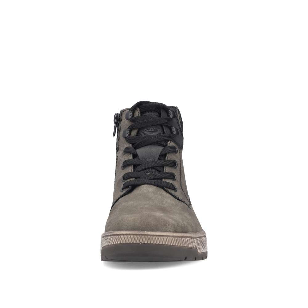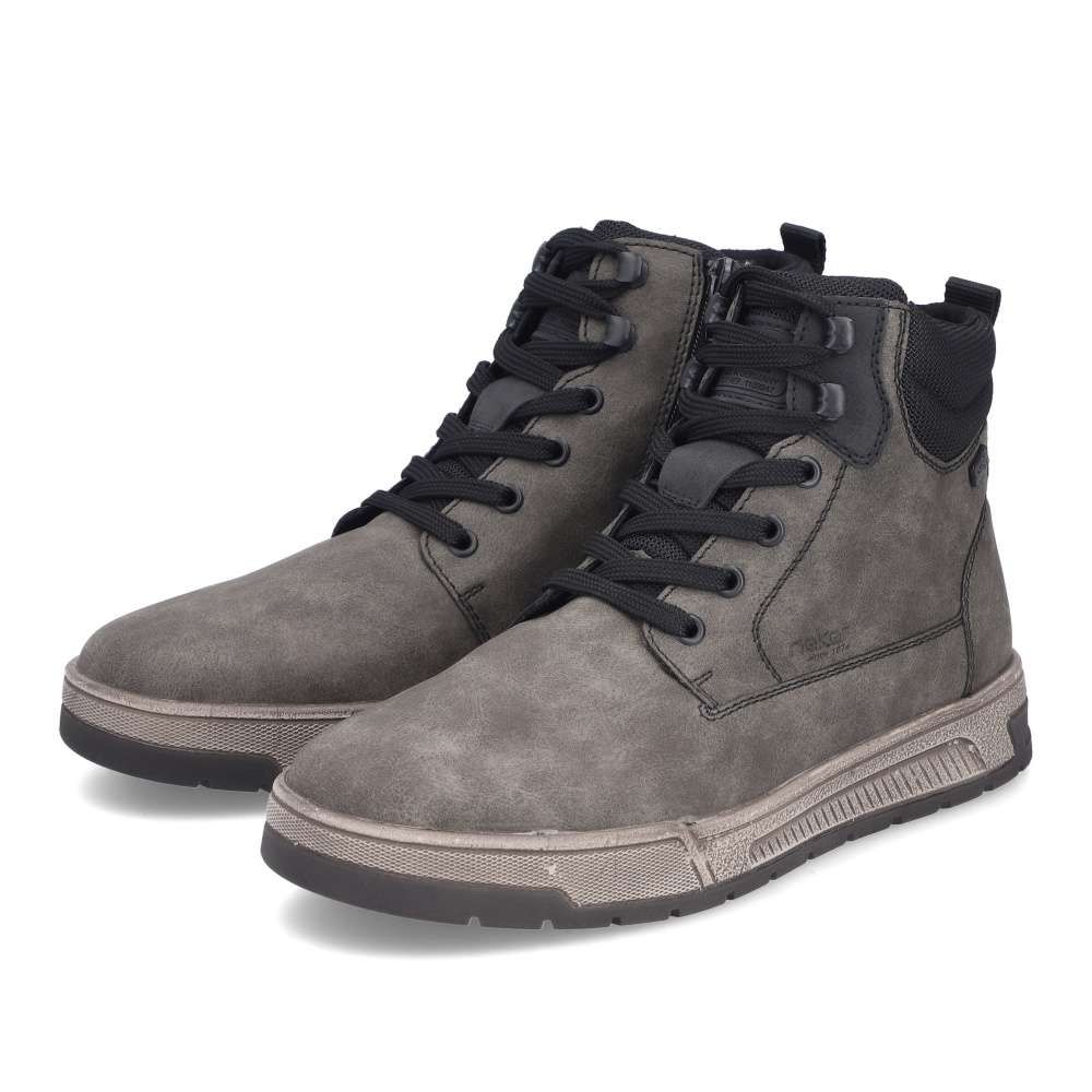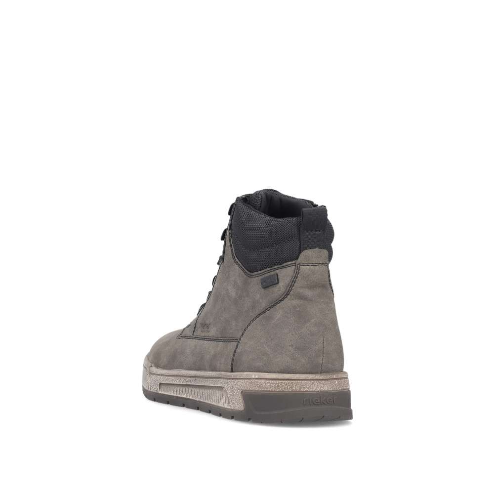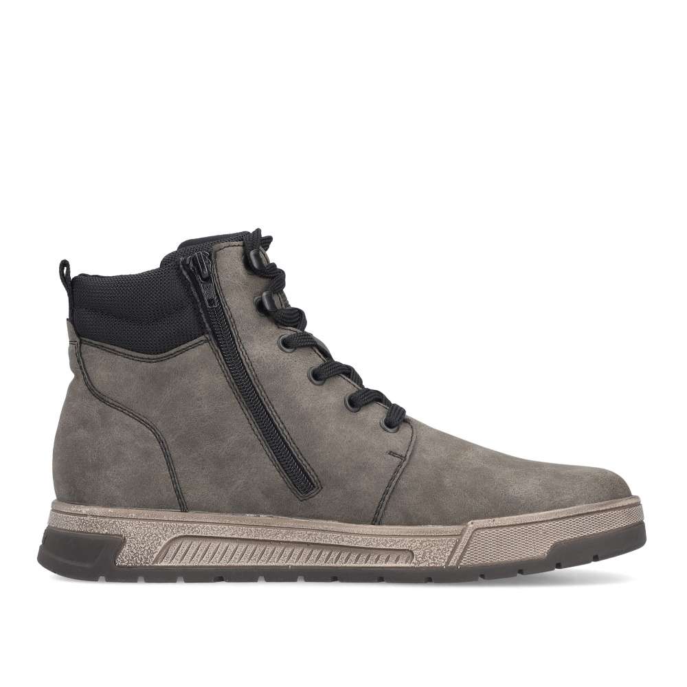 Detailní informace Moderní kotníkové boty RIEKER, připravené čelit i nepříznivému počasí a vytvoří dostatečný prostor chodidlu svojí šířkou. Šedý svršek doplněný kontrastním prvkem v oblasti kotníku působí stylově a nepromokavá membrána spolehlivě ochrání před deštěm a vlhkostí. Zatímco hřejivá podšívka z ovčí vlny se postará o tepelný komfort během chladných dní. Praktické šněrování v kombinaci s bočním zipem zaručuje snadné obutí a perfektní přizpůsobení noze. Příjemným praktickým prvkem je vyjímatelná stélka a podrážka s tlumením nárazů, které přinášejí pohodlí a jistotu při každém kroku. Tento model bot je ideální volba pro aktivní městský život i procházky v přírodě.