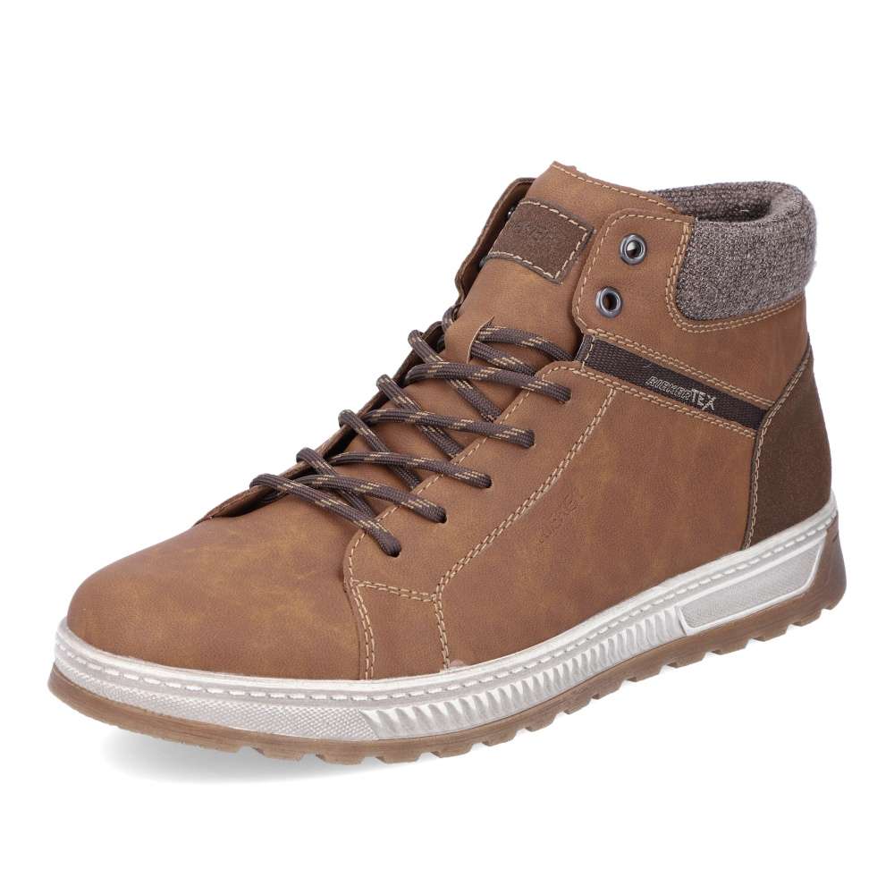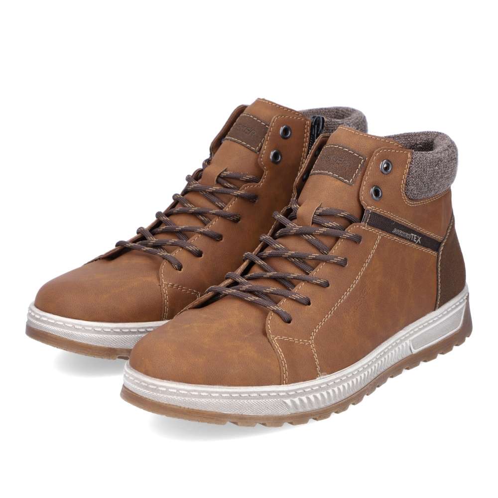 Hnědé kotníkové boty, které jsou ozvláštněny lemem u horního okraje a všitým logem značky RIEKER. Obuv je vybavena tkaničkami na šněrování, díky nimž si je můžete upravit přesně podle představ a zip na vnitřní straně skvěle usnadní Vaše nazutí. S měkkou stélkou se můžete těšit na komfortní a pohodlnou chůzi po celý den nošení. Ležérní model, který skvěle zkombinujete s jakýmkoliv outfitem z Vaší skříně. Technologie: Antistress – podešev je díky této technologii lehká, flexibilní, absorbuje nárazy při došlapu a snadno se přizpůsobí každé noze. Rieker TEX – funkční vrstva, díky které je bota nepromokavá a přesto prodyšná. Podšívka je vyrobena z pravé jehněčí vlny.