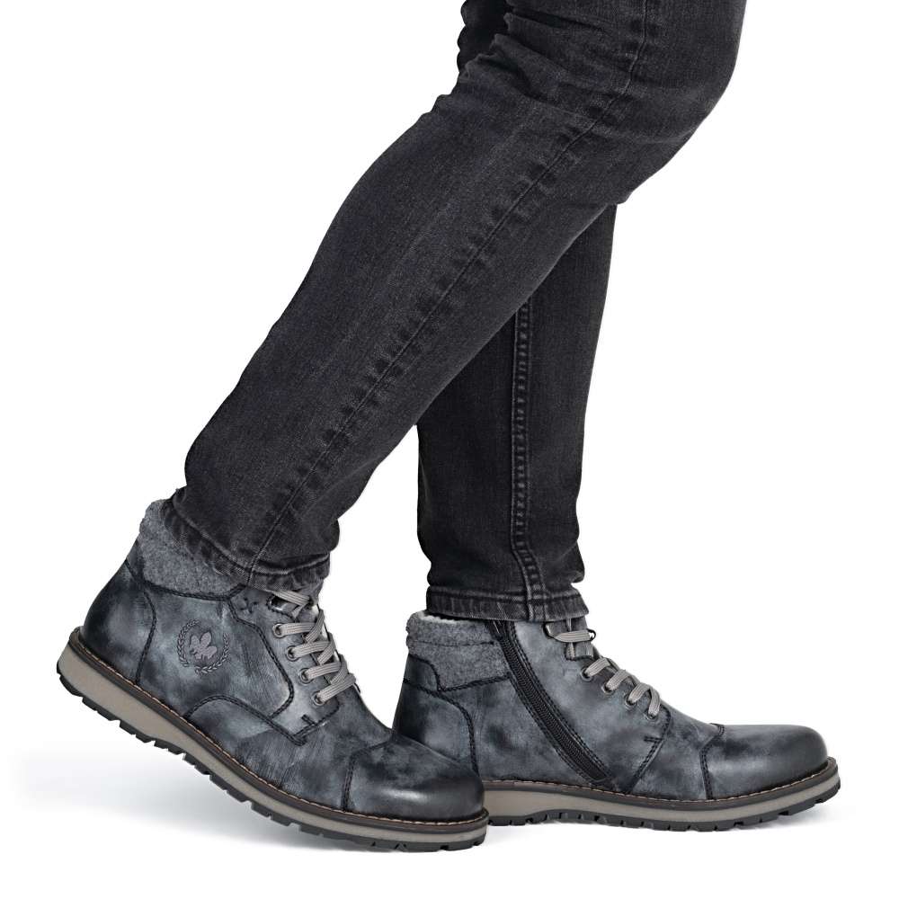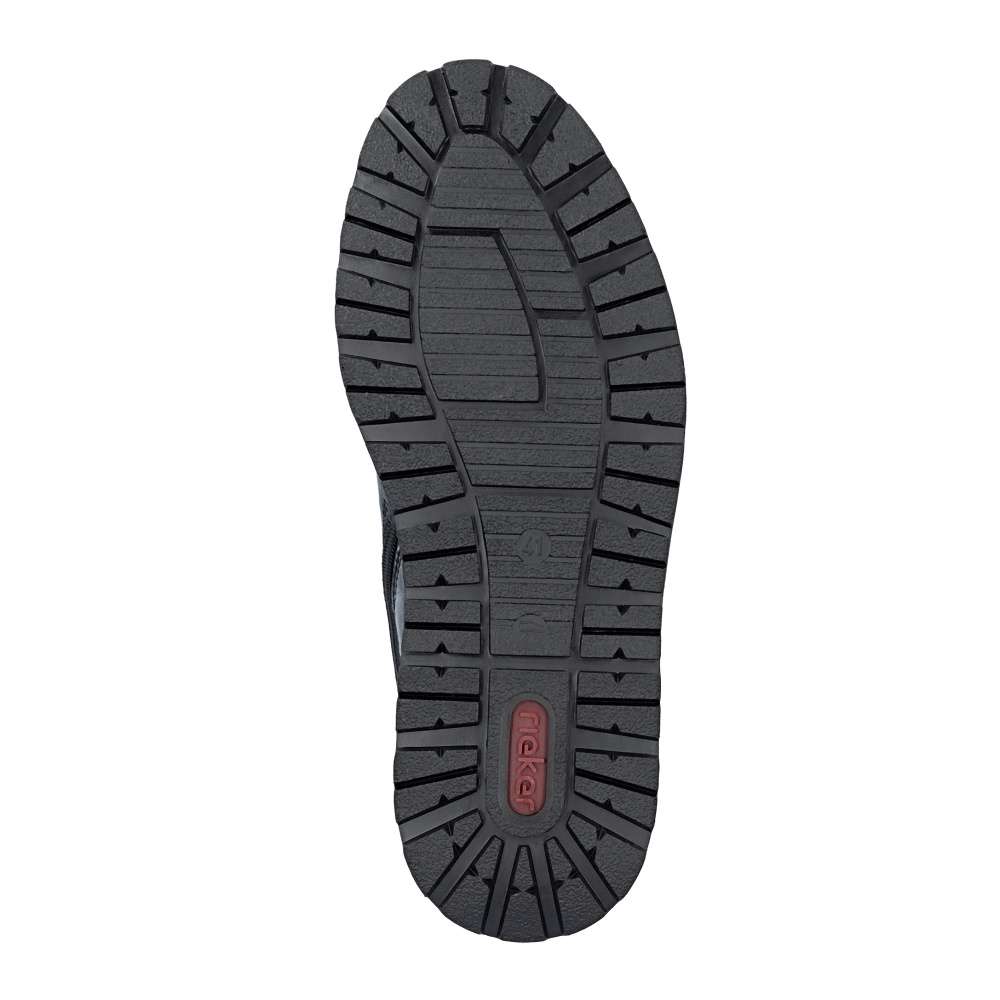 Detailní informace Unikátní pánský model RIEKER vyniká svým originálním vzhledem a drobnými detaily, jako je všité logo značky a textilní lem při horním okraji. Šněrování umožňuje přesné přizpůsobení obuvi podle vašich potřeb a boční zip urychlí nazutí bez zbytečného zdržování. Komfortní stélka a podešev tlumící nárazy při chůzi zajistí pohodlnou chůzi po celý den. Tento model je navíc zateplený, což vám poskytne dokonalý tepelný komfort i během chladných dní. Tento model bot RIEKER je ideální společník pro každodenní cesty do práce nebo procházku s rodinou.