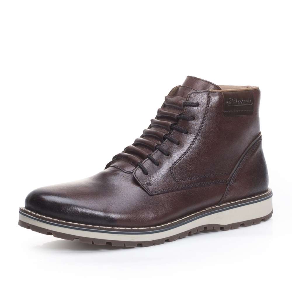 Hladký kožený svršek tmavě hnědé barvy je decentně odzdoben prošíváním a nášivkou s logem značky. Šněrováním zajímavě propletených tkaniček a funkčním zipem si pak upravíte obuv přímo k Vaší noze.