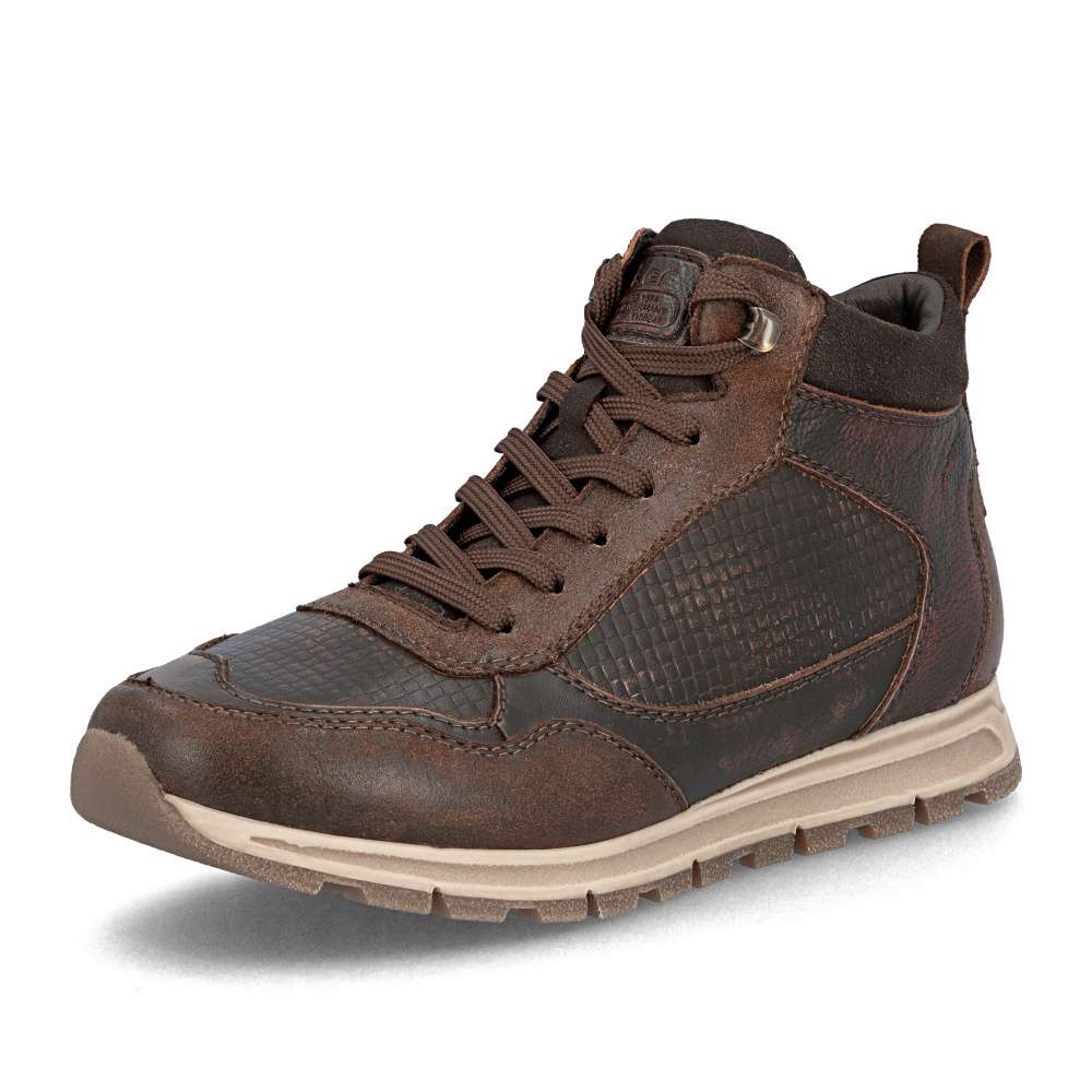 Detailní informace Kotníkové boty RIEKER zaujmou svým působivým designem, kde se potýká kožený hladký materiál se strukturovanými částmi, což vytváří stylový vzhled. Praktické šněrování doplněné bočním zipem zajišťuje pohodlné obouvání i individuální přizpůsobení tvaru nohy. Měkká, vyjímatelná stélka širšího střihu a flexibilní podrážka s tlumením nárazů dělají z tohoto modelu ideálního společníka do každodenního ruchu i ve volném čase.