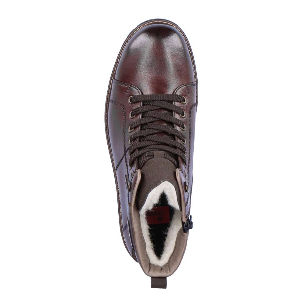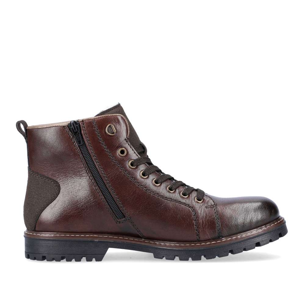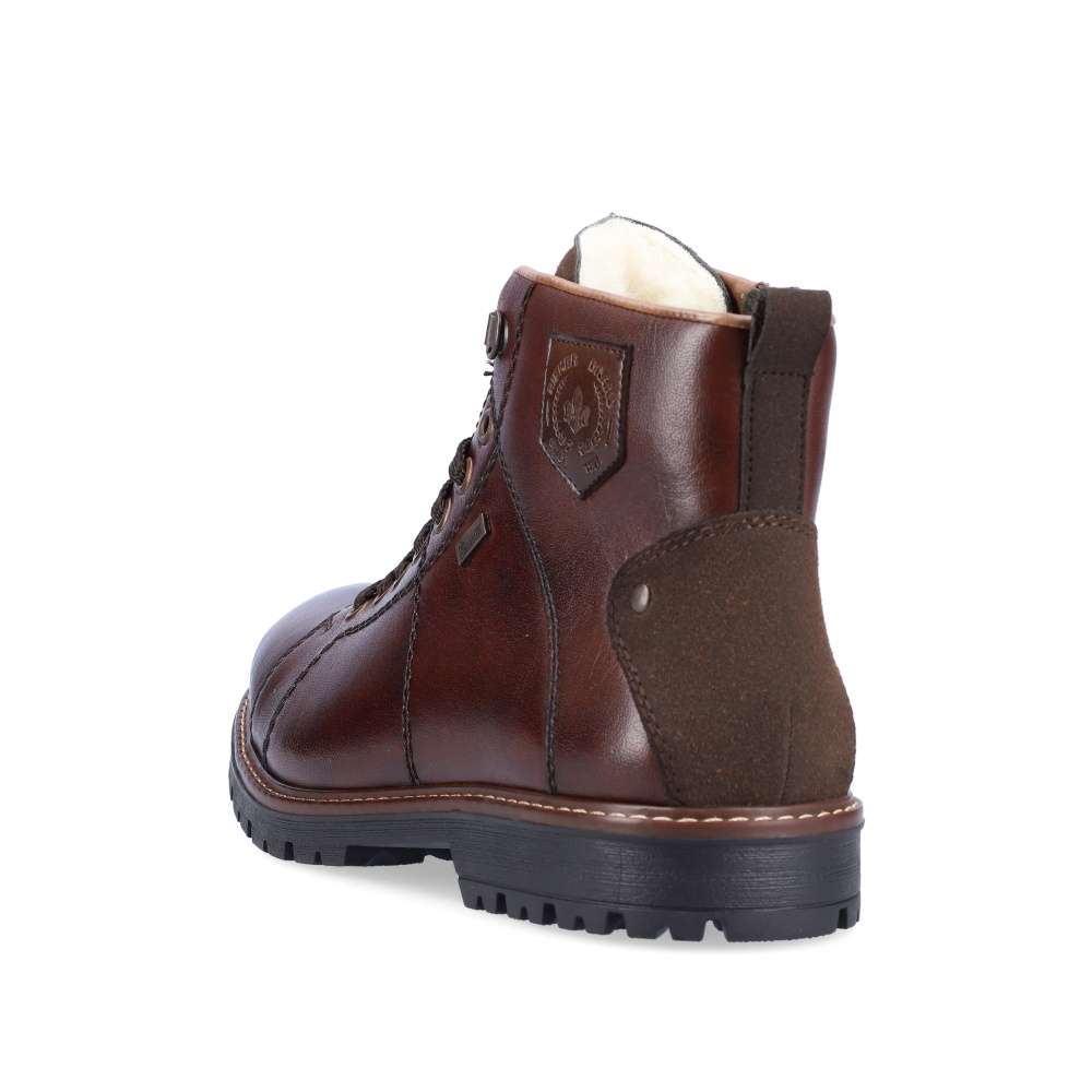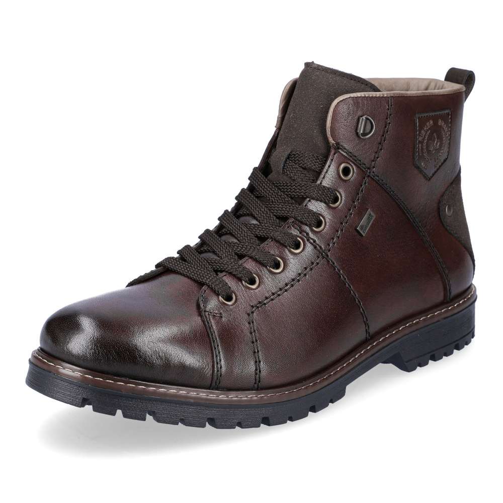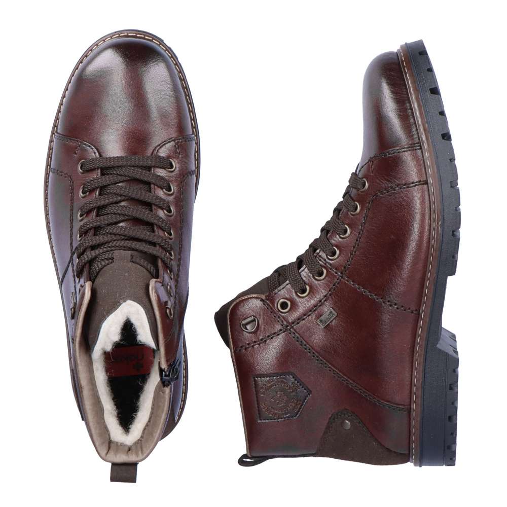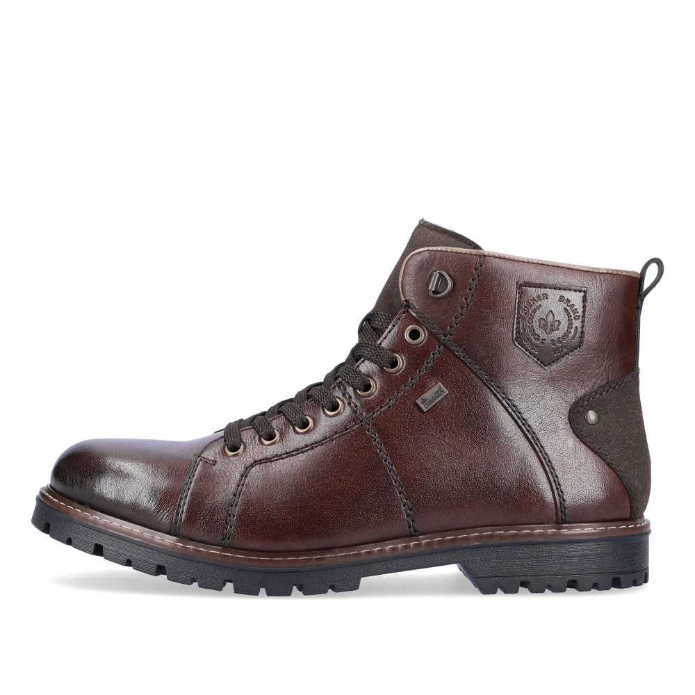 Tato pánská kotníková obuv značky Rieker určená na zimu Vás jistě uchvátí na první pohled svým dokonalým vzhledem. Hladký kožený svršek v tmavě hnědé barvě je členitý a ozdobně prošit jemným stehem. Na vnějších stranách slouží jako dekorativní prvek kožený odznáček, na zadní straně se nachází ozdobný broušený díl. K uzavírání boty slouží šněrování, kterým si ji upravíte na nohu tak, aby Vám sedla jako ulitá, a chránila tak před vnějšími vlivy. Díky podšívce z jehněčí vlny, která je doplněná o speciální TEX membránu, a měkké vyjímatelné stélce se budete v těchto botách značky Rieker cítit pohodlně, a zahřejí Vás i v největších mrazech. Kvalitní podešev s technologií Antistress Vám zajistí pohodlnou a bezpečnou chůzi. Díky svému vzhledu je navíc snadno sladíte s každým outfitem. Vhodné jsou jak na procházku do mrazivého počasí, tak do města, či posezení s přáteli. Technologie: Antistress – podešev je díky této technologii lehká, flexibilní, absorbuje nárazy při došlapu a snadno se přizpůsobí každé noze. Rieker TEX – funkční vrstva, díky které je bota nepromokavá a přesto prodyšná. Tato bota je vybavena vyjímatelnou stélkou.