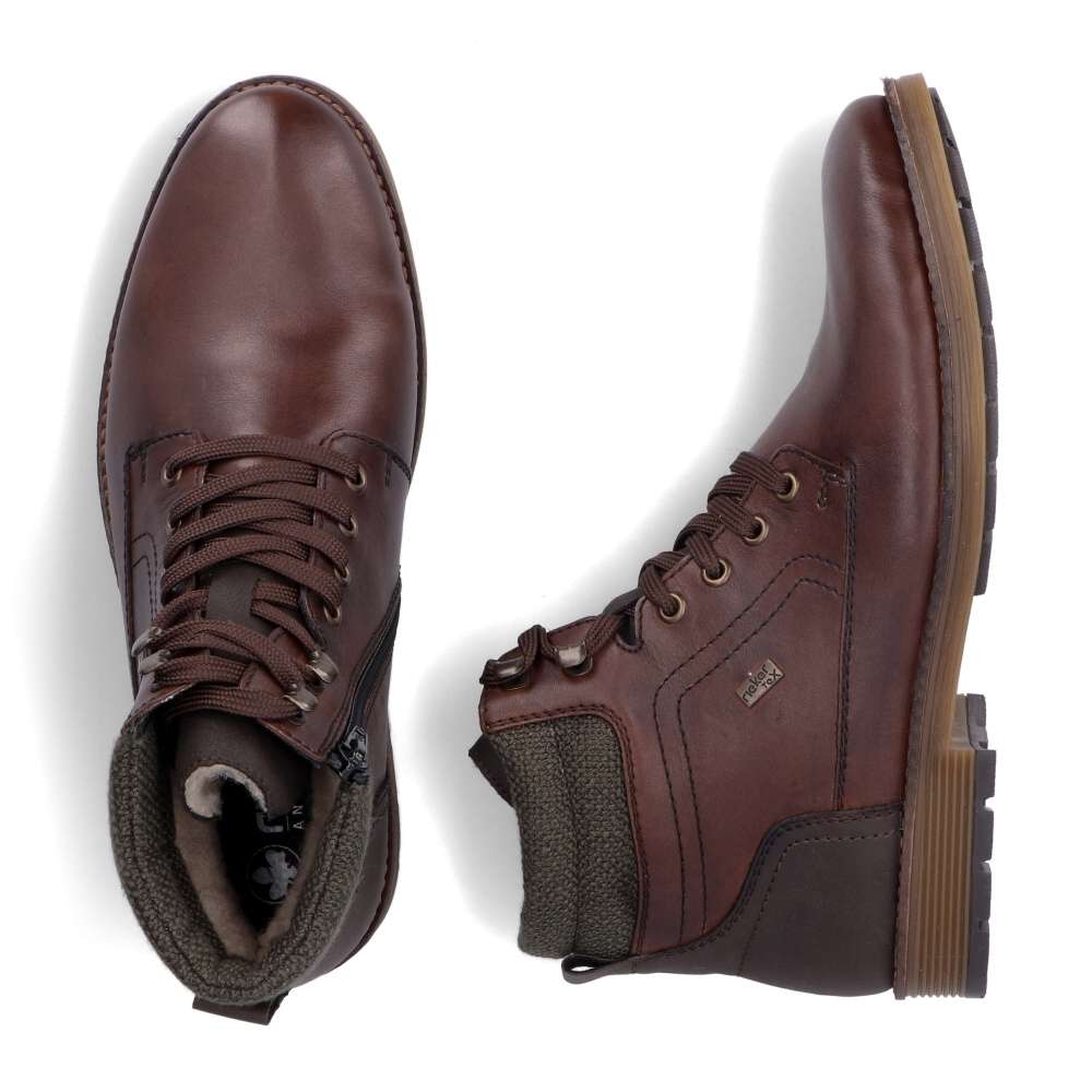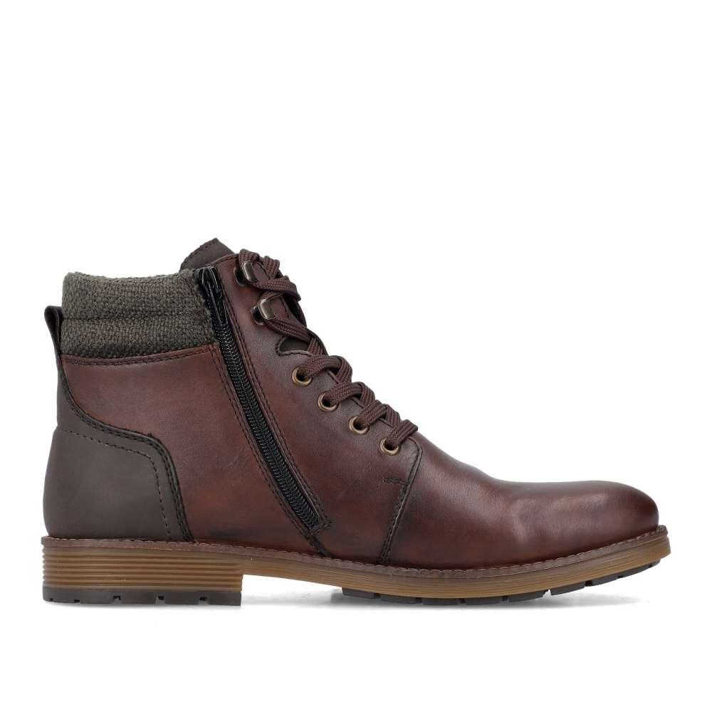 Detailní informace Jednoduchost pánských kotníkových bot RIEKER je přesně to, co oceníte při každodenním nošení. Hnědý svršek těchto bot je vybaven nepromokavou membránou, což zajišťuje ochranu proti vlhkosti a nepříznivým povětrnostním podmínkám. Zip umístěný na boční části bot a šněrování umožňují snadné obutí a dokonalou úpravu. Pohodlí každým krokem budete cítit díky měkké stélce, kterou lze vyjmout nebo vyměnit. Tyto kotníkové boty jsou ideální volbou pro muže, kteří hledají kombinaci pohodlí, funkčnosti a jednoduchého stylu.