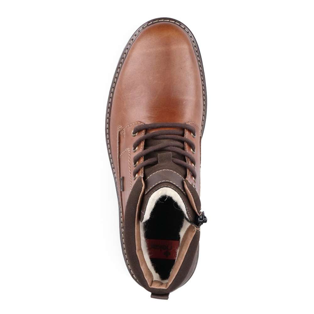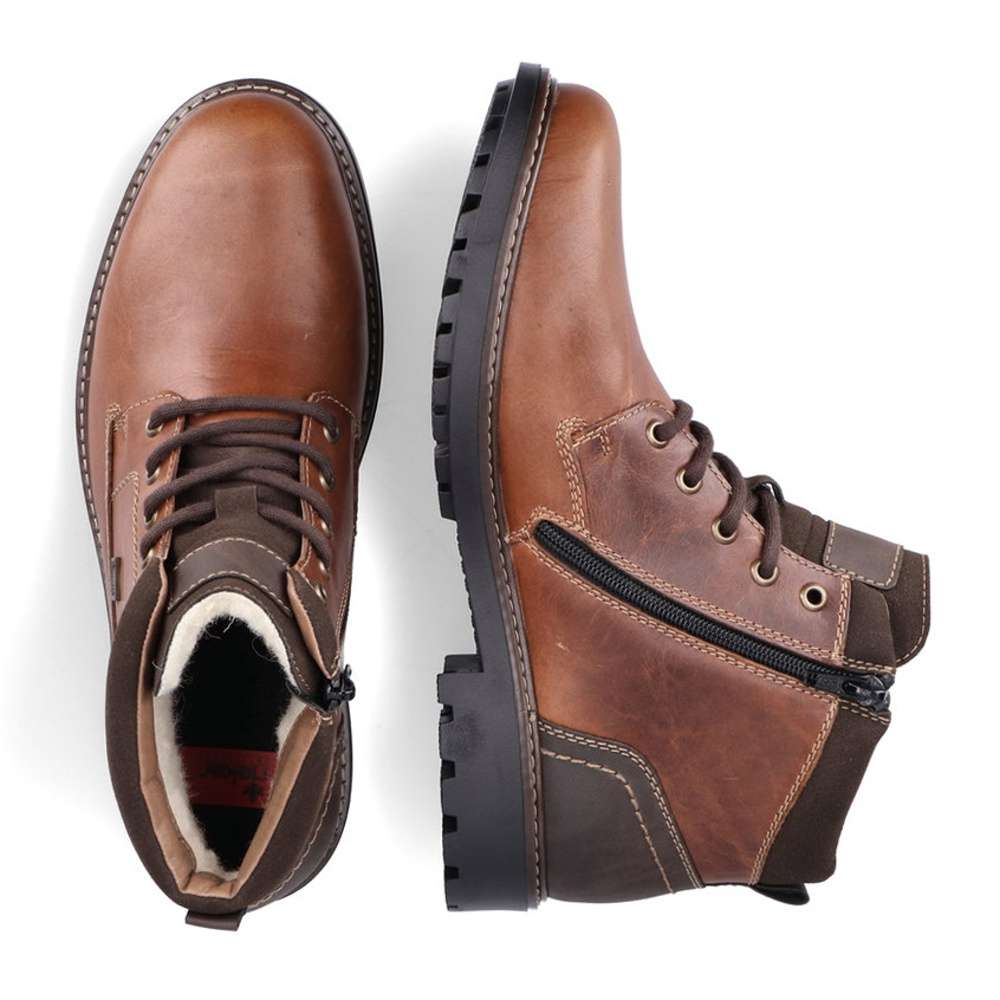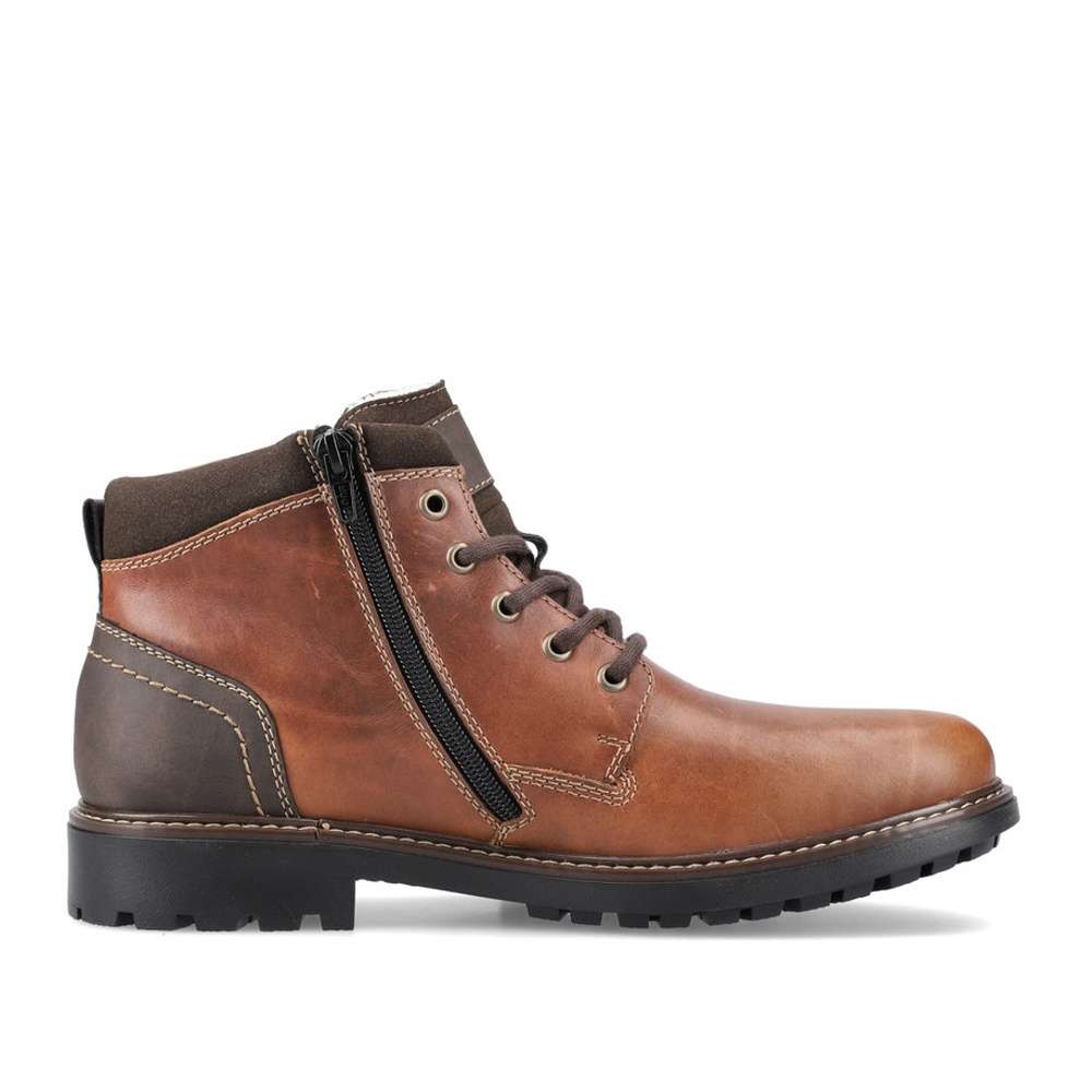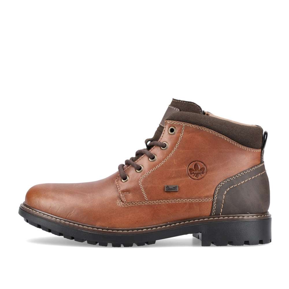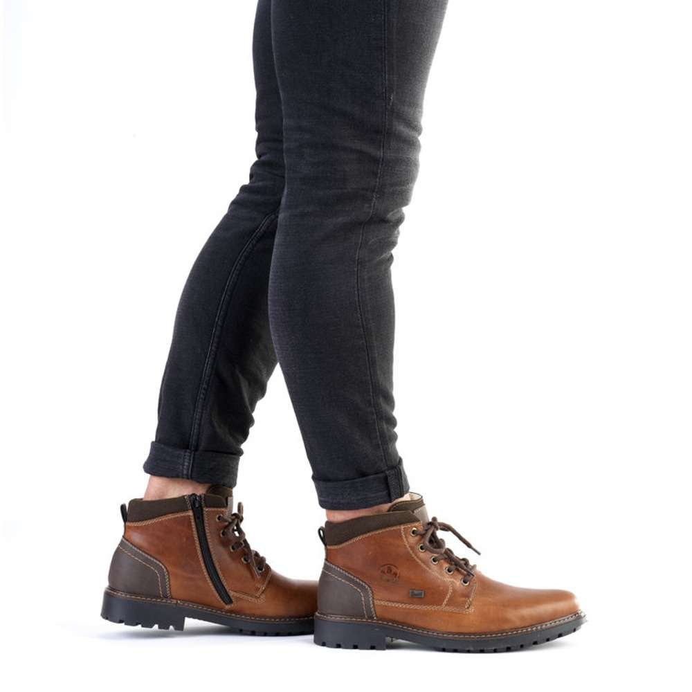 Pánské traktorové boty značky RIEKER, je to, co vyžaduje muž, který je náročný na pohodlí a styl. Svršek této boty je kožený, hladký s logem značky a textovou membránou. Z vnitřní strany je funkční zip, který Vám pomůže k lepšímu prozutí, a šněrováním si doladíte obuv přímo na nohu. Výška podešve cca 3,4 cm a její hrubší vzor Vám dodá komfort, který s Vámi bude celý den. Tento model si v zimním období zajisté oblíbíte a stane se Vaší součástí. Technologie: Antistress - podešev je díky této technologii lehká, flexibilní a absorbuje nárazy při došlapu a snadno se přizpůsobí každé noze. Rieker TEX – funkční vrstva, díky které je bota nepromokavá a přesto prodyšná. Tato bota je vybavena vyjímatelnou stélkou.