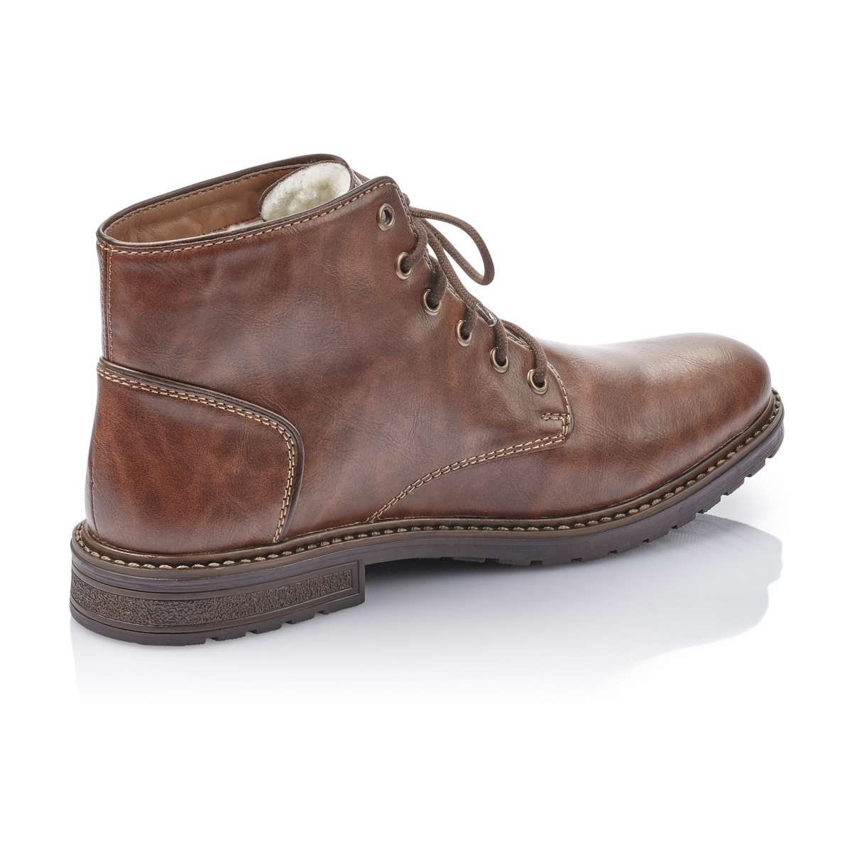 Obuv v hnědé barvě značky RIEKER s decentním prošitím a logem značky v patní části, skvěle doplní hnědá aplikace u horního okraje. Tkaničky na šněrování slouží pro lepší přizpůsobení přímo na Vaši nohu. Tyto stylové boty se budou hodit snad ke každému Vašemu outfitu.