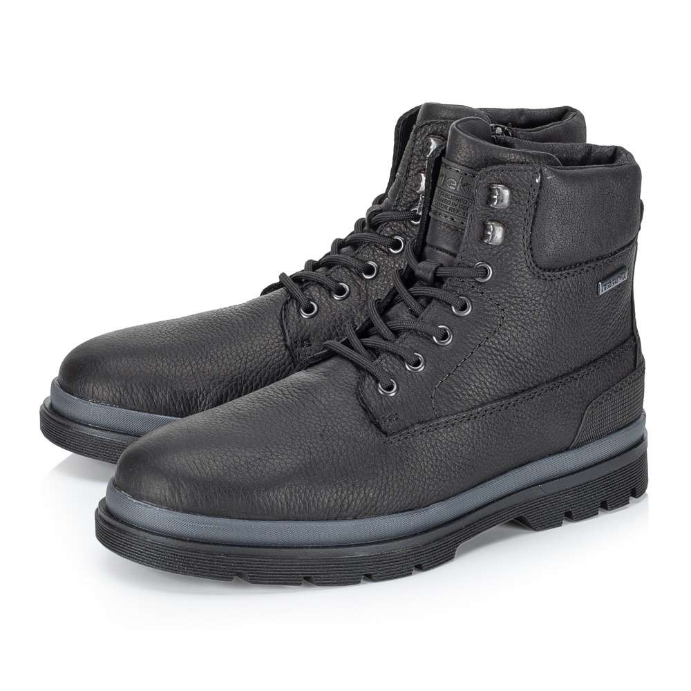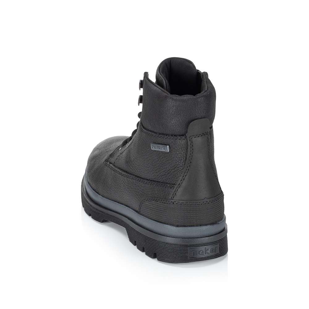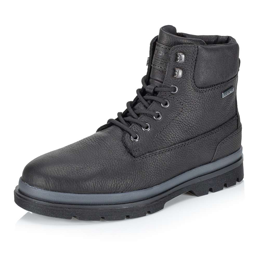 Detailní informace Tato kotníková obuv Rieker v černém odstínu spojuje praktičnost s jemným nádechem originality. Kombinace kvalitních materiálů se stylovým detailem v oblasti paty dodává botám charakter a vkus. Vnitřní zip zajistí rychlé a pohodlné obutí, zatímco šněrování umožní doladit střih přesně podle Vašich představ. O komfort se postará měkká, vyjímatelná stélka širšího střihu a funkční nepromokavá membrána, která ochrání Vaše nohy i v sychravém počasí. Dokonalý tepelný komfort zajistí hřejivá podšívka z ovčí vlny. Skvělá volba pro muže hledající spolehlivou a zároveň stylovou obuv pro každý den.