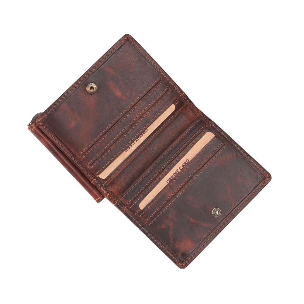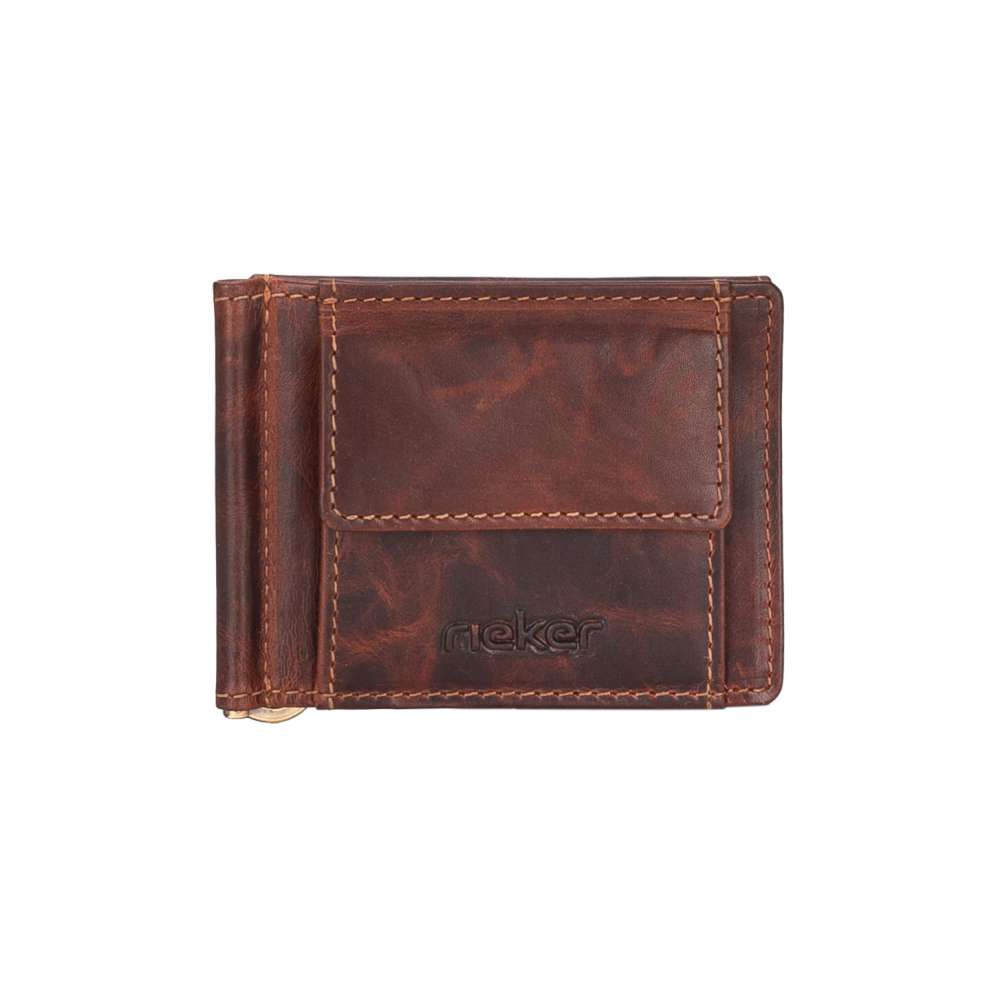 Dopřejte si pánskou koženou peněženku RIEKER, která v sobě spojuje charakter, styl a každodenní spolehlivost. Už na první pohled zaujme propracovaným koženým svrškem, který zdobí linie šití a logo značky - detail, který podtrhuje její kvalitu a originalitu. Na přední části se nachází kapsička uzavíraná drukem, ideální na mince a zadní část obsahuje otevřenou kapsičku. Samostatný prostor uzavírá druk na zadní straně a odhalí prostor vybavený přihrádkami na karty. Po otevření vás přivítá prakticky řešená středová část s dalšími oddíly na karty a sponou pro uchycení bankovek, která zajistí jejich bezpečné uložení. Tato peněženka RIEKER spojuje funkčnost, kompaktní design a moderní vzhled, díky čemuž se stane spolehlivým doplňkem pro každý den.