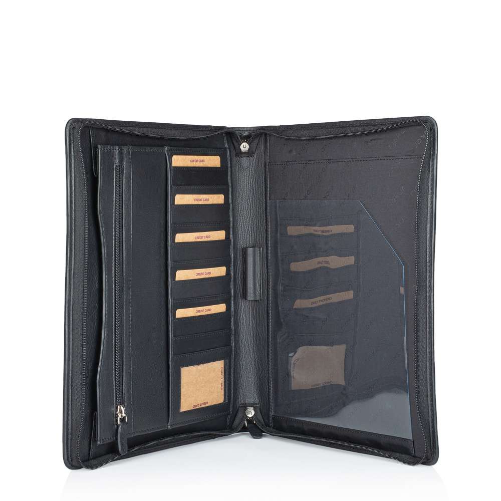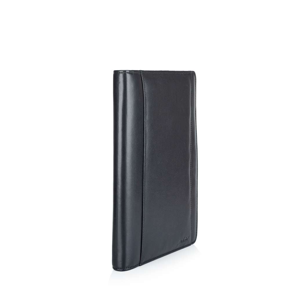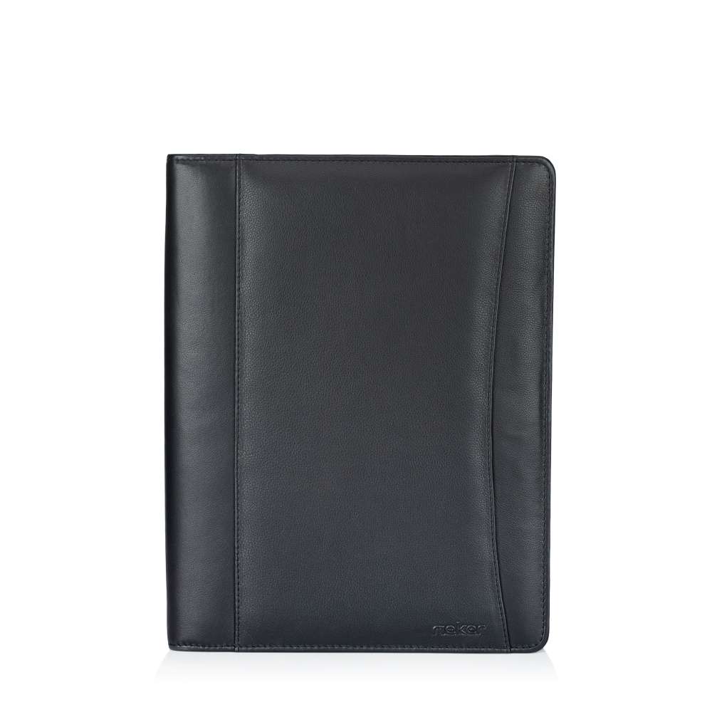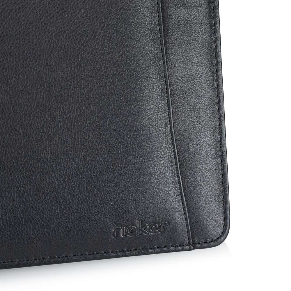 Elegantní kožený organizér pro dokumenty značky RIEKER je ideálním doplňkem pro muže, kteří hledají stylový a praktický způsob, jak mít všechny dokumenty přehledně uspořádány. Hladký kožený svršek doplňuje decentní logo značky, které podtrhuje jeho nadčasový vzhled a na přední části je umístěn také otevřený samostatný prostor. Organizér je vybaven zipem, který odhaluje vnitřní prostor vybavený v pravé části dvěma prostory k uložení dokumentů. Levá část obsahuje otevřené samostatné prostory, zipem uzavřený a menší přihrádky vhodné na karty, doklady či jiné menší dokumenty. Středový panel má úchyt k uložení psacích potřeb. Tento model spojuje kvalitu materiálů, elegantní design a praktické členění, díky čemuž je ideálním společníkem do práce, na setkání nebo služební cesty.