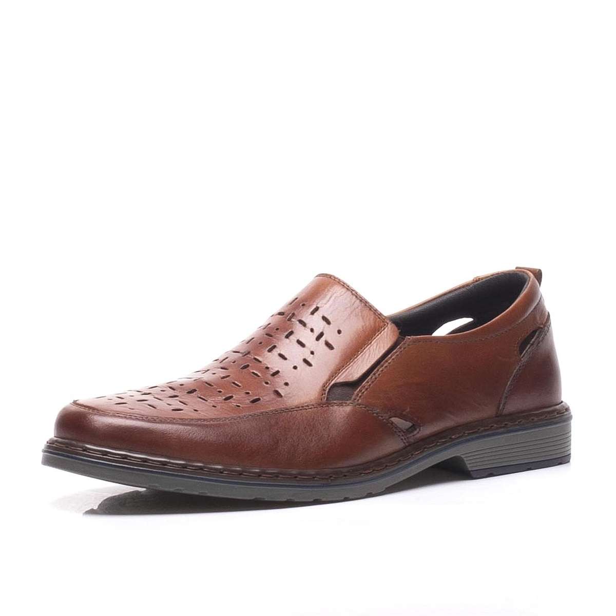 Tyto kožené polobotky oceníte v teplejších měsících. Můžete v nich vyrazit do práce, ale i na procházku do města. Skvěle budou vypadat k lehkým plátěným kalhotám. Hladký svršek hnědé barvy s jemným stínováním má perforaci v přední části a kolem paty. To činí tento model velmi prodyšným. Pro snadnější nazouvání jsou v oblasti nártu všité pružné gumičky.
