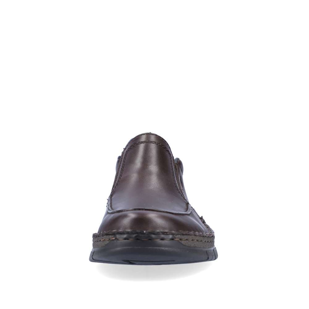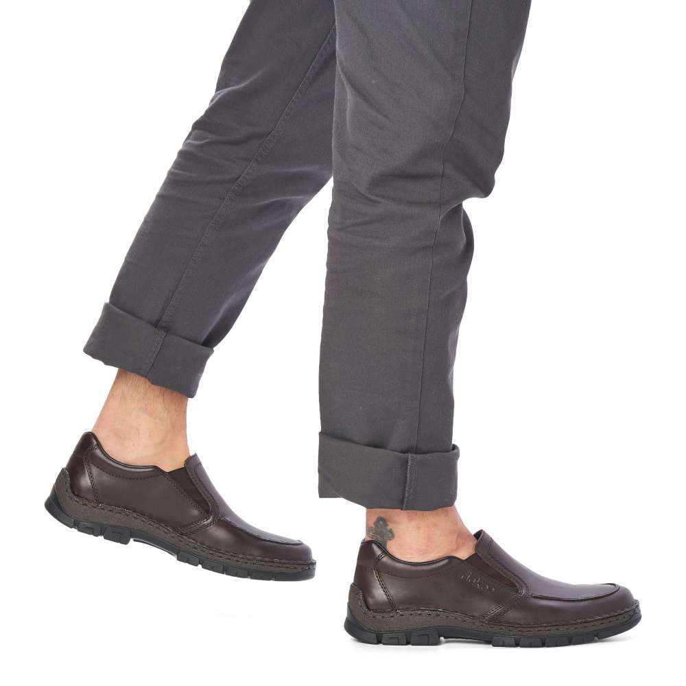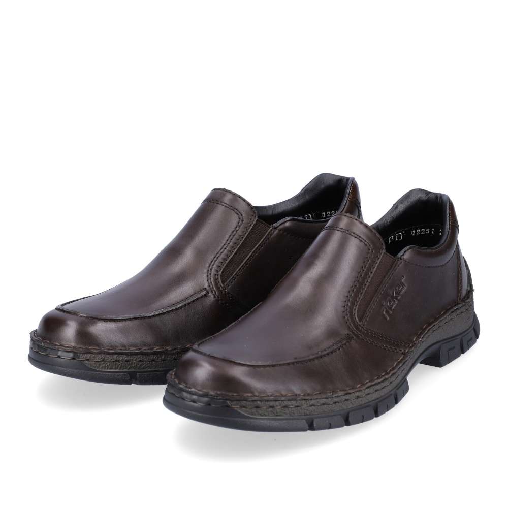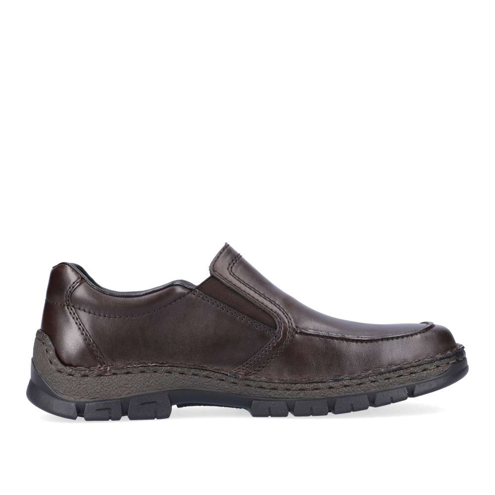 Tyto tmavě hnědé kožené mokasíny od značky RIEKER ocení všichni muži se širšími chodidly. Materiál svršku i podšívky je pravá kůže, takže se můžete spolehnout na to, že se obuv přizpůsobí právě Vaší noze a také Vám obuv bude sloužit dlouhá léta. Pro snadné obutí je obuv vybavena gumičkami. Měkká stélka a podešev s technologií tlumící nárazy Vám zajistí celodenní pohodlí, ať už se vydáte kamkoliv.