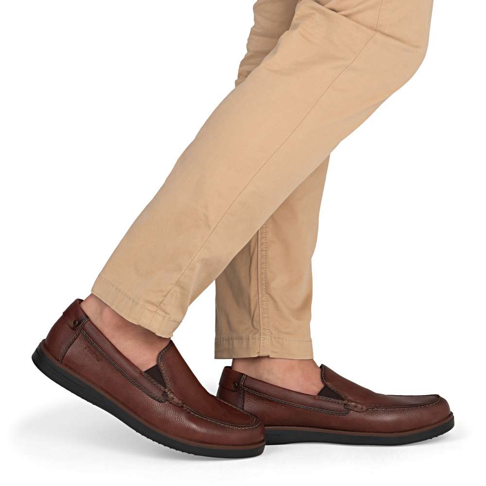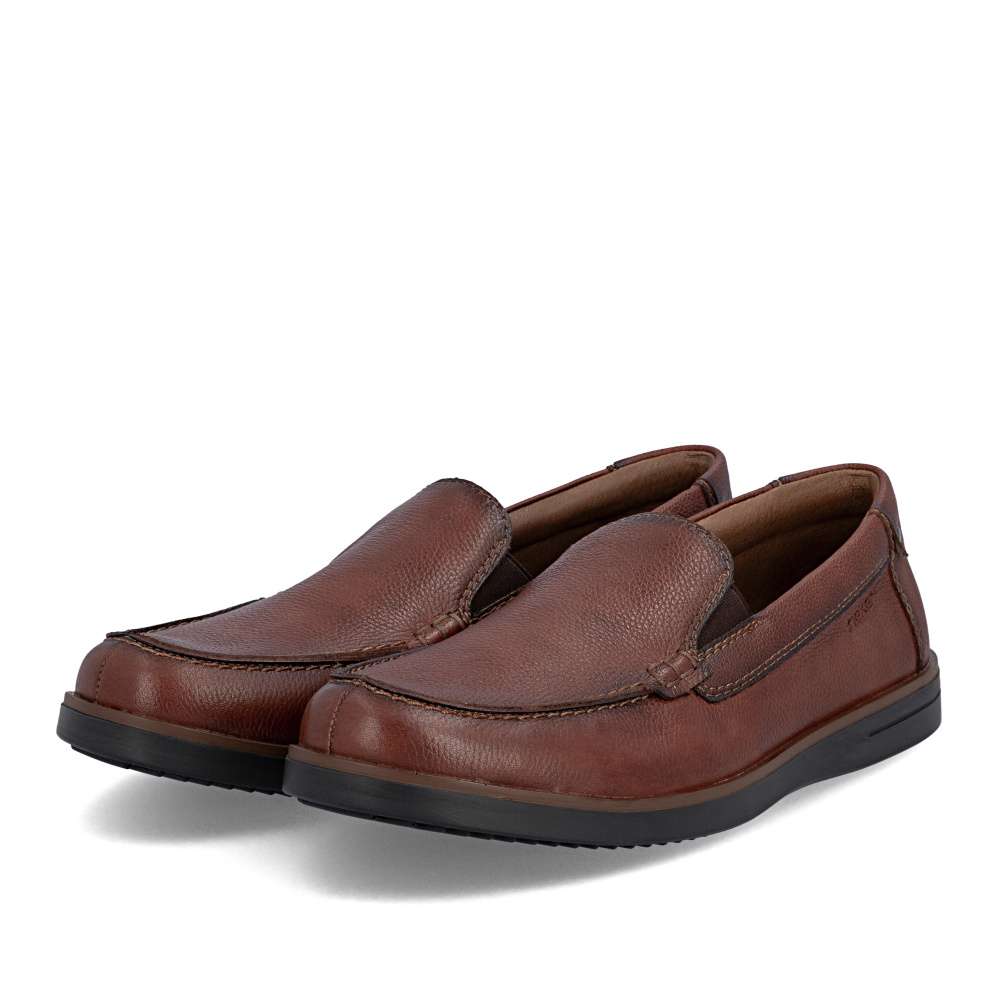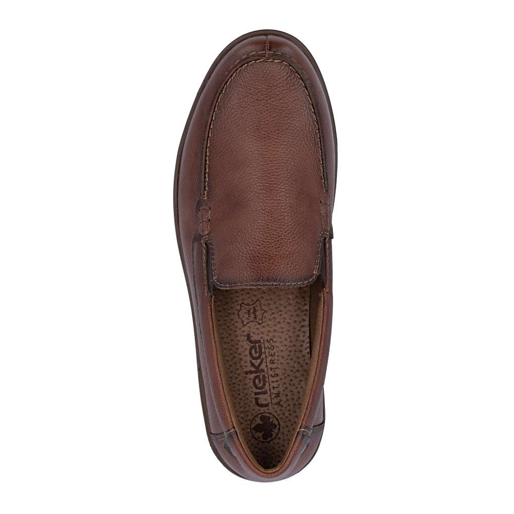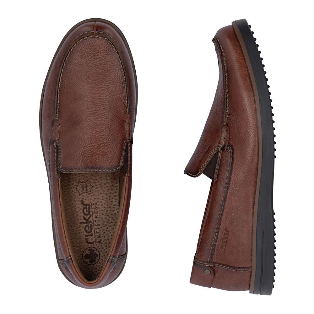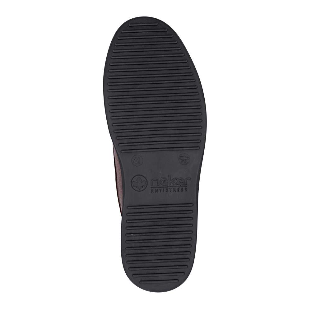 Tyto pánské mokasíny RIEKER představují dokonalou kombinaci nadčasového stylu, kvality a pohodlí, které ocení každý moderní muž. Hnědý svršek je doplněn liniemi prošití a decentním logem značky, které dodává mokasínům originální punc. Kožená stélka zajišťuje maximální komfort a podporu chodidla po celý den. Podrážka s tlumením nárazů a flexibilním zpracováním poskytuje pohodlný krok na různých površích a minimalizuje únavu při delším nošení. Tyto mokasíny RIEKER jsou ideální volbou pro muže, kteří oceňují klasický vzhled a kvalitu – skvěle doplní elegantní i ležérní outfit a poskytnou spolehlivé pohodlí během celého dne. Technologie: Antistress – díky čtyřem antistresovým vlastnostem – lehkosti, pružnosti, prostornosti a vynikající absorpci nárazů – vám boty RIEKER nabídnou komfortnější chůzi.