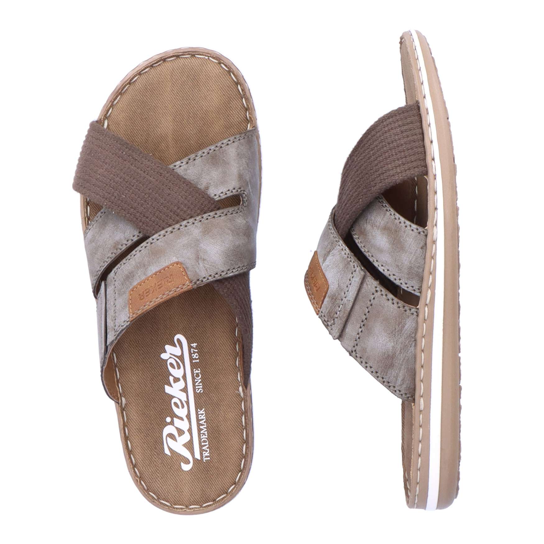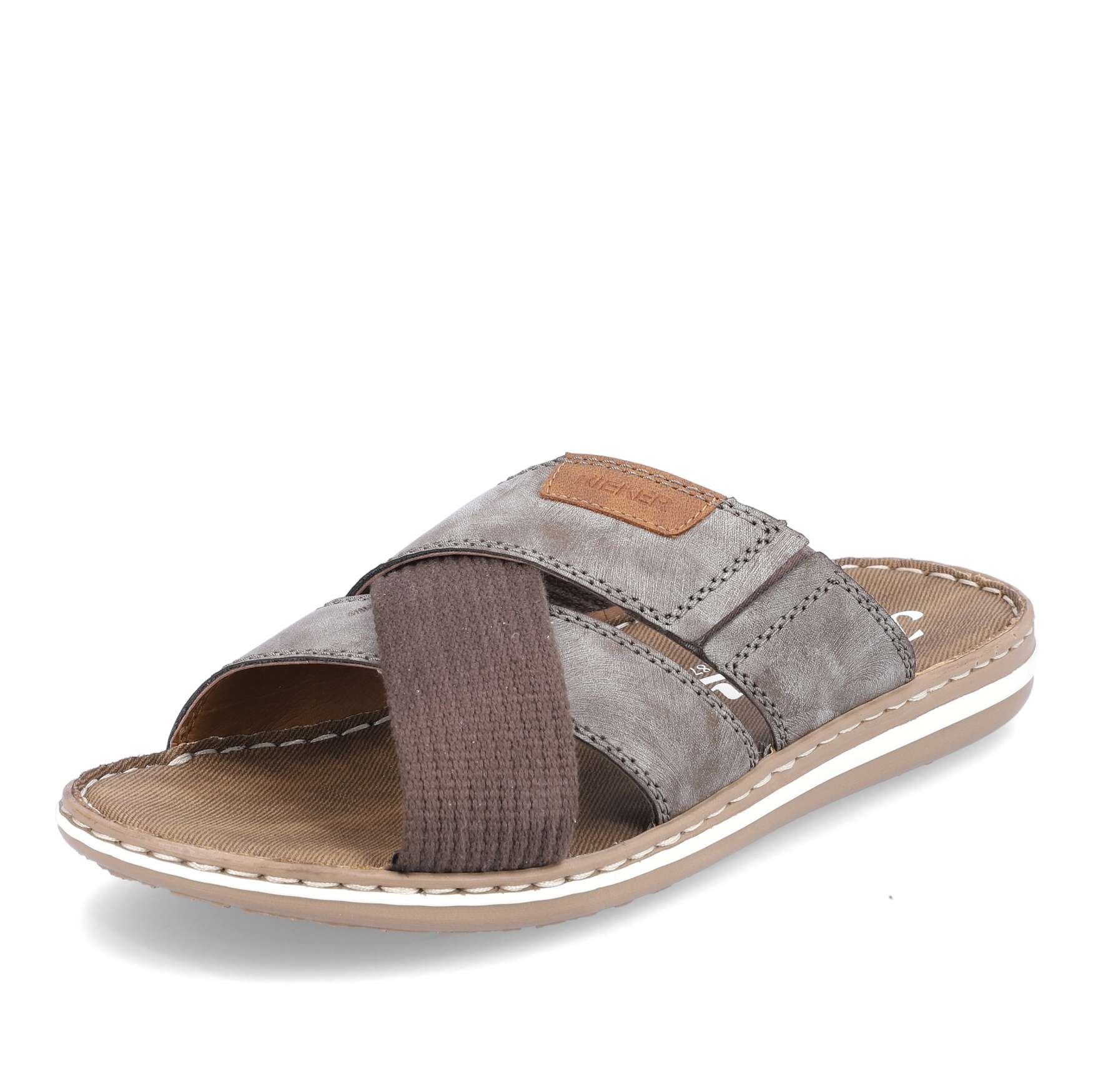 Tyto pánské nazouváky značky RIEKER zaručeně ocení pánové, kteří mají rádi pohodlí. Svršek z kvalitních materiálů má zajímavý vzhled díky překříženým páskům a kontrastnímu nápisu značky. Pohodlí na každém kroku zajistí měkká stélka a podešev svým provedením se zdobným proužkem doladí vzhled obuvi k dokonalosti. Tento model je vhodný jak do práce, tak na procházku. Technologie: Antistress – podešev je díky této technologii lehká, flexibilní, absorbuje nárazy při došlapu a snadno se přizpůsobí každé noze.