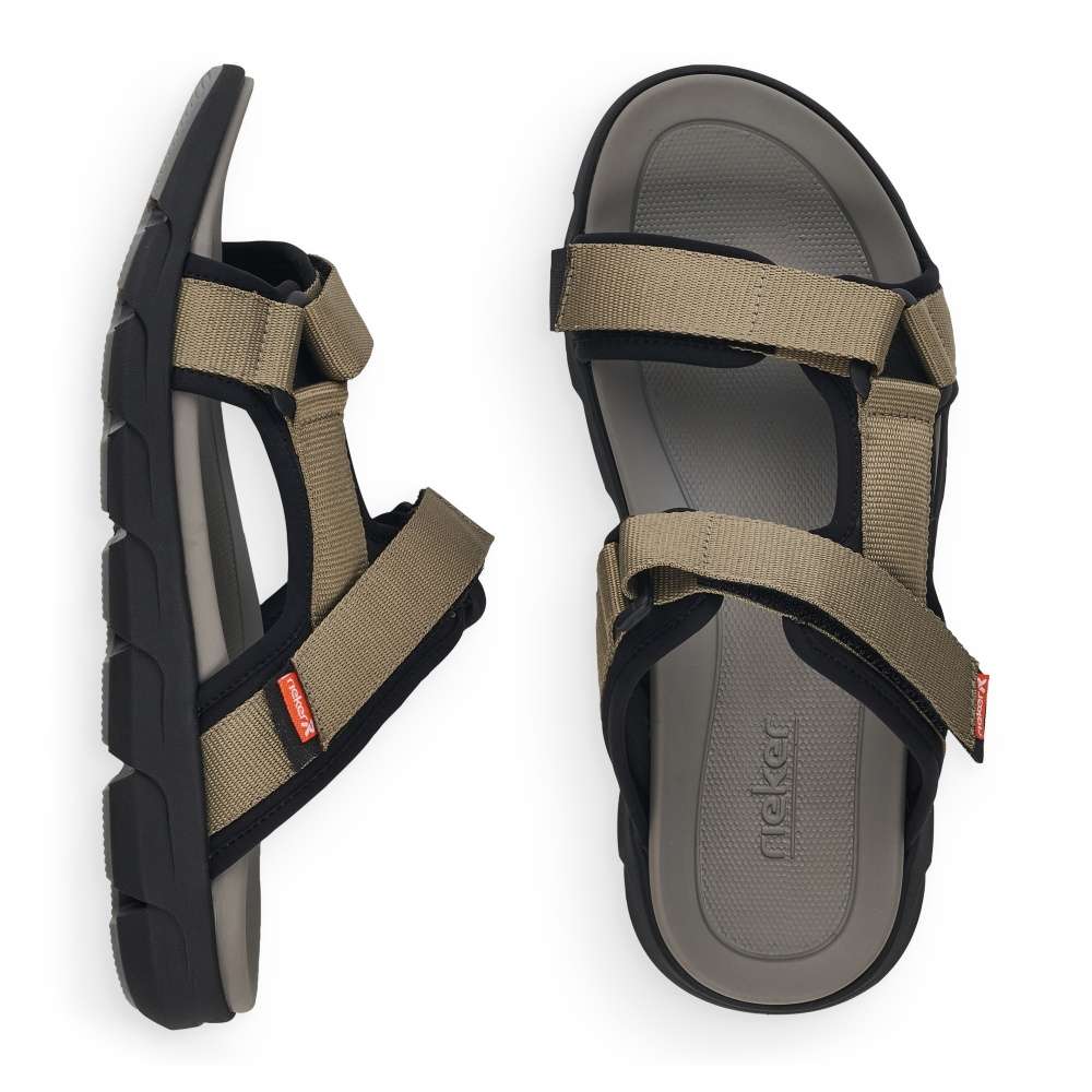 Pánské sandále značky RIEKER jsou ideálním obutím do letních dnů. Strukturovaný syntetický a textilní materiál, dodává botě styl. Vaši pozornost si získají svým dokonalým zpracováním a dobrou fixaci nohy pomocí suchých zipů, které jsou zakončeny ozdobnou koncovkou značky RIEKER. Hodí se nejen na procházky přírodou, ale i do města nebo na dovolenou.