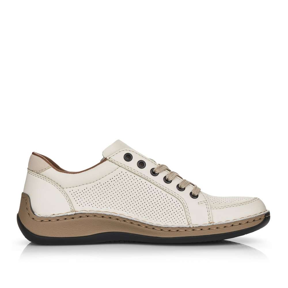 Tato polobotka značky RIEKER zaručeně nezklame ty z Vás, kteří mají širokou nohu. Svršek z pravé kůže je zdobný perforací, kontrastními částí na vnější straně a vytlačeným logem značky na patě. Pro jednoduché přizpůsobení obuvi slouží šněrování tkaničkami a pohodlí na každém kroku Vám zajistí měkká stélka z pravé kůže. Kvalitní podešev je se svrškem spojena šitím, které je pro tuto značku typické. Tuto obuv můžete využít jak do práce, tak i třeba na krásných procházkách městem. Technologie: Antistress – podešev je díky této technologii lehká, flexibilní, absorbuje nárazy při došlapu a snadno se přizpůsobí každé noze.