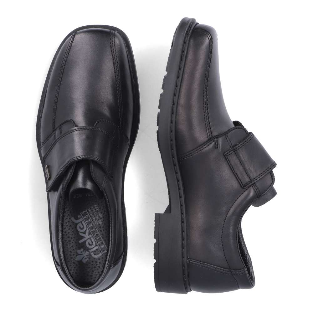Pánská obuv černé barvy od značky RIEKER je vyrobená z přírodní usně.Výrazné šití a hladký materiál vytváří dokonalý vzhled. Ke snadnému nazutí poslouží pásek přes nárt na suchý zip, díky kterém si obuv upravíte dle svých požadavků.Měkká stélka Vám zaručí pohodlí po celý den. Neváhejte a doplňte si botník tímto vkusným modelem. Technologie: Antistress – podešev je díky této technologii lehká, flexibilní, absorbuje nárazy při došlapu a snadno se přizpůsobí každé noze. Rieker TEX – funkční vrstva, díky které je bota nepromokavá a přesto prodyšná.