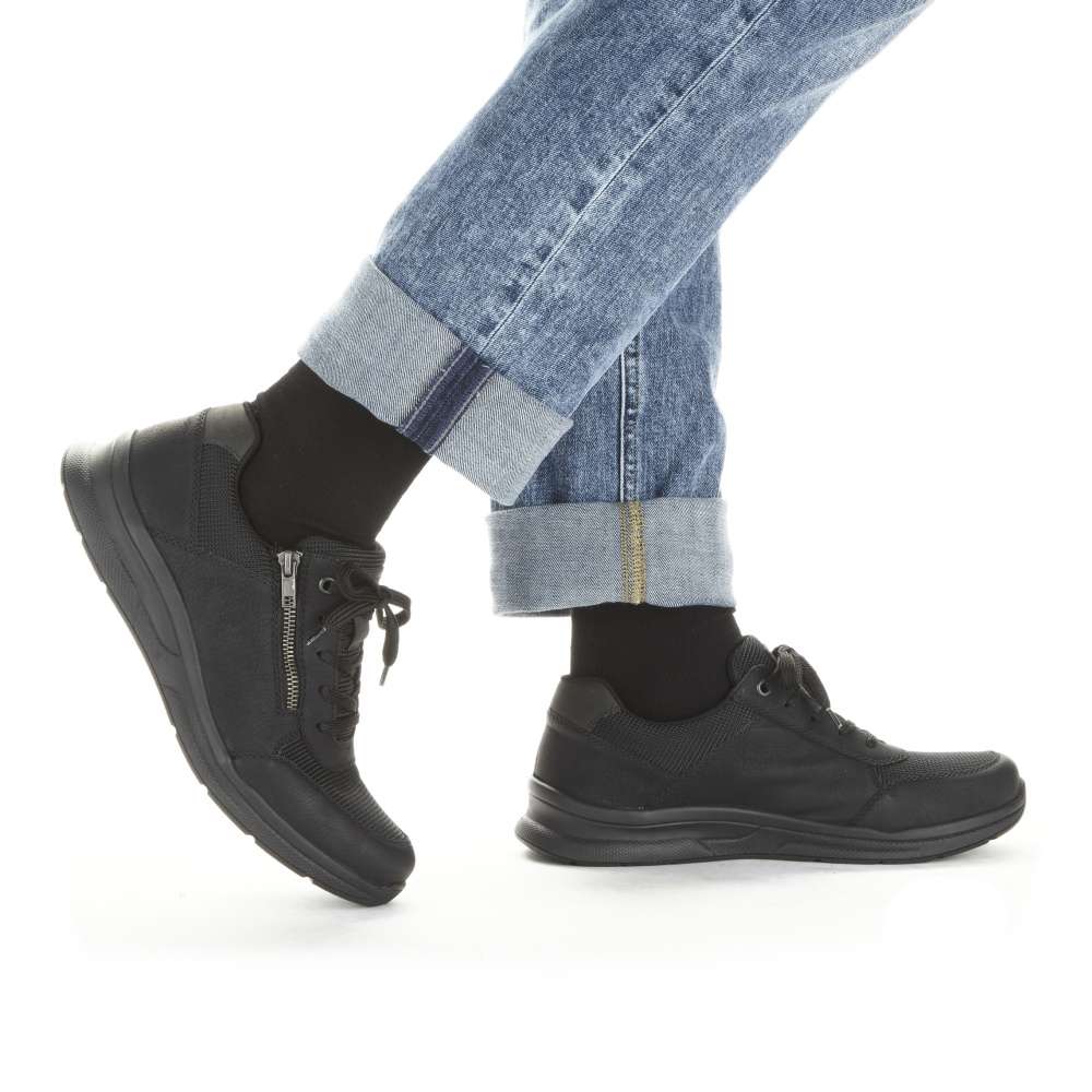 Klasická pánská teniska od značky RIEKER v černé barvě je vyrobená z kombinace hladkého a prodyšného materiálu.Díky jednoduchému vzhledu ji krásně sladíte s jakýmkoliv outfitem. Obouvání Vám usnadní praktický zip a tkaničky na šněrování.Vyjímatelná měkká stélka Vám zaručí pohodlí po celý den.Budou skvělou volbou pro každého muže, který má rád jednoduchost. Technologie: Antistress – podešev je díky této technologii lehká, flexibilní, absorbuje nárazy při došlapu a snadno se přizpůsobí každé noze. Tato bota je vybavena vyjímatelnou stélkou.
