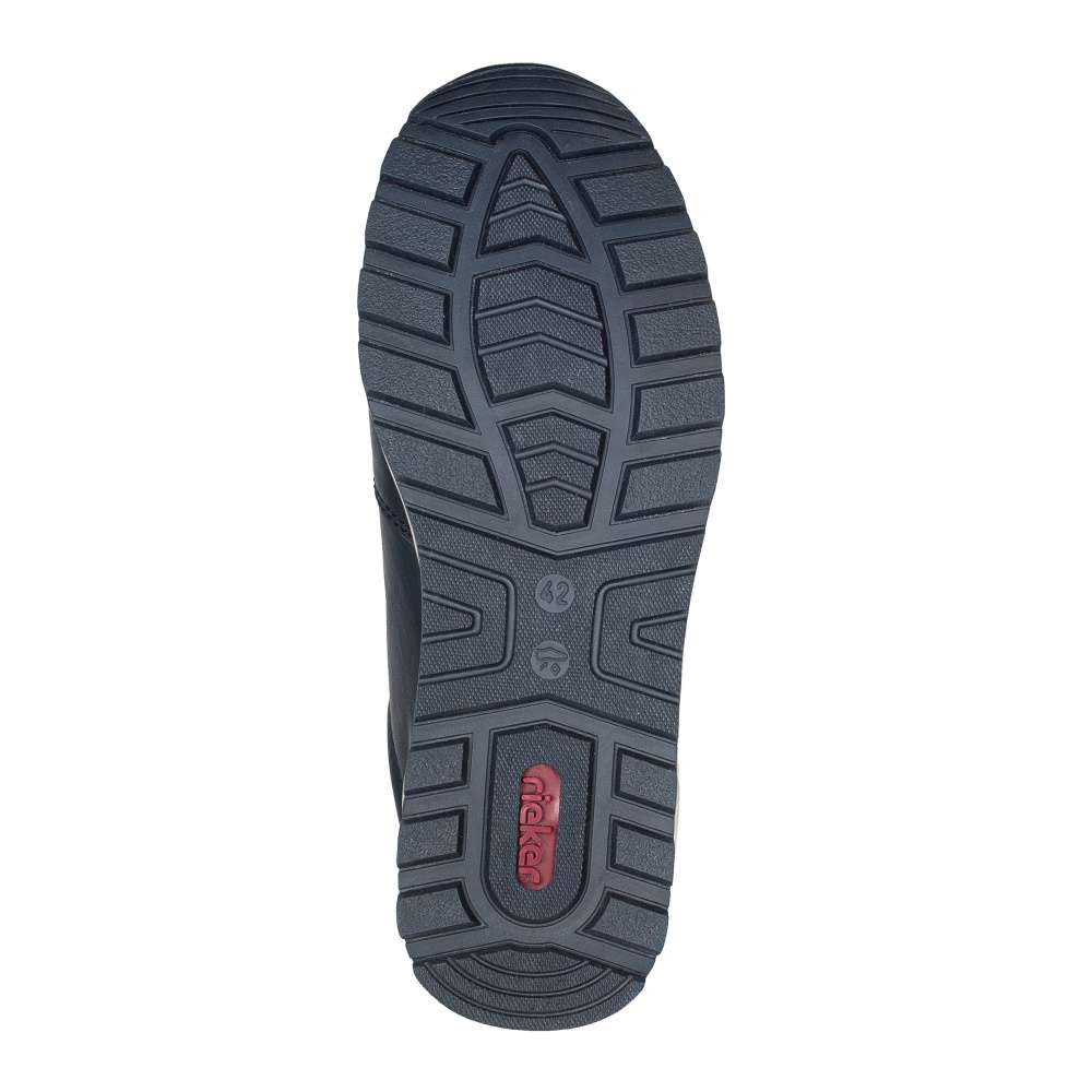 Tyto pánské boty značky RIEKER budou tou správnou investicí pro vaše každodenní chození. Kožený svršek je zdoben funkčním zipem a logem značky z vnější strany. Šněrování a zip zajistí snadnější obouvání a upevnění nohy tak, jak je pro Vás příjemné. Měkká kožená stélka Vám zaručí pohodlí po celý den. K botám si klidně vezměte nějaké pohodlné kalhoty a vyrazte do ulic s přáteli. Technologie: Antistress – podešev se díky této technologii lehká, flexibilní, absorbuje nárazy při došlapu a snadno se přizpůsobí každé noze. Tato bota je vybavena vyjímatelnou stélkou.
