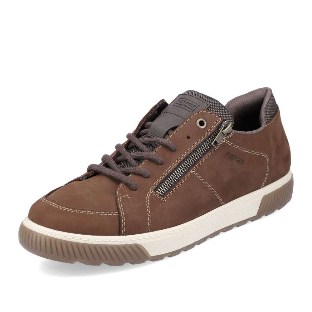 Detailní informace Tyto pánské tenisky od značky RIEKER jsou vyrobeny převážně z přírodní usně v hnědé barvě. Díky zdobnému prošití světlou nití a designové podešvi si obuv zalíbíte už na první pohled. Ke snadnému nazutí poslouží tkaničky na šněrování, díky kterým si boty lehce přizpůsobíte na své chodidlo. Měkká stélka Vám zaručí pohodlí po celý den. Tento lehce kombinovatelný model by rozhodně neměl chybět žádnému muži ve svém botníku.