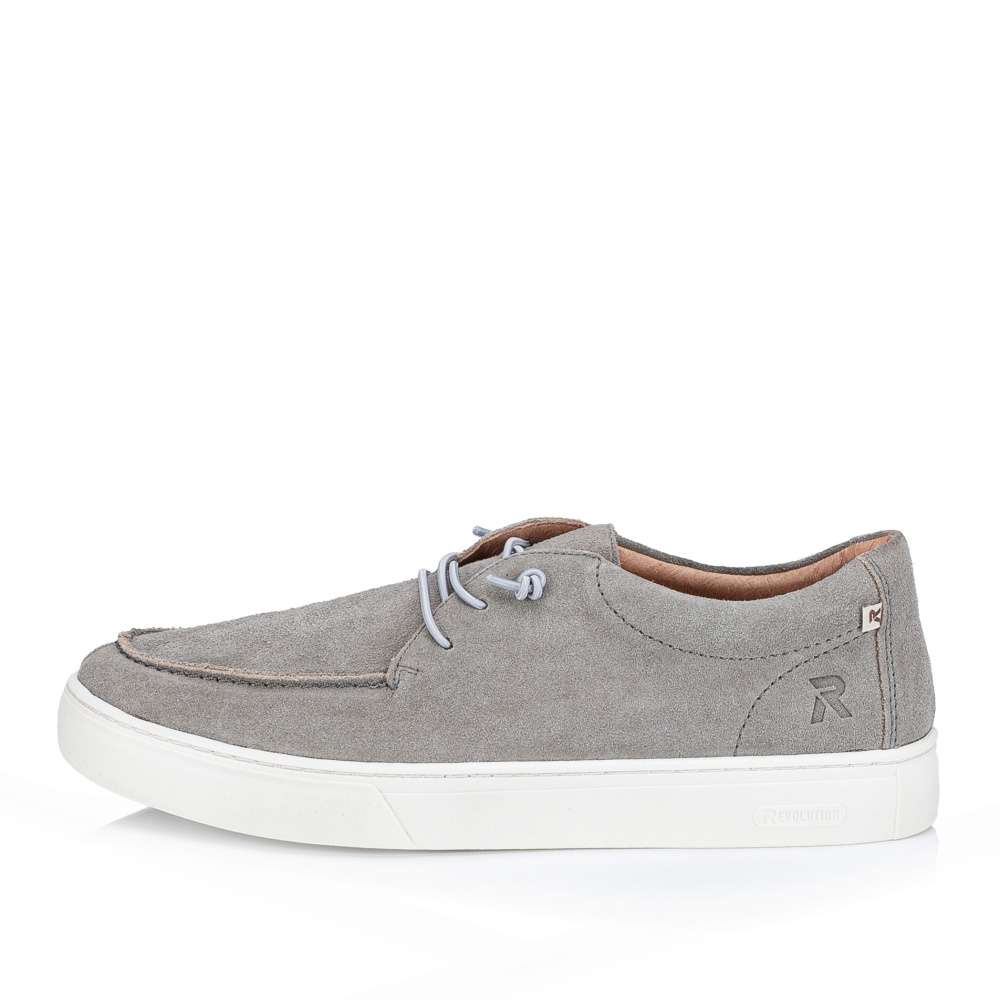 Rieker Revolution je nová řada moderní obuvi s obrovským důrazem na komfort a pohodlí i při celodenním nošení. Pánské šedé mokasíny mají kožený svršek a nabízí moderní design, dekorační logo značky a výrazné prošití v přední části dodávají obuvi sofistikovaný vzhled. Pro komfortní pocit při nošení je stélka měkká a navíc je vyjímatelná. Praktickým prvkem je šněrování, které je variabilní díky gumičce a přiloženy jsou i klasické šňůrky pokud preferujete pevné šněrování. Tyto mokasíny jsou ideální volbou pro muže, kteří chtějí spojit moderní vzhled a pohodlí ve své každodenní obuvi. Technologie: RevolutionSoft – unikátní stélka, která změkčuje došlap a přizpůsobí se tvaru Vašeho chodidla. Tato bota je vybavena vyjímatelnou stélkou.