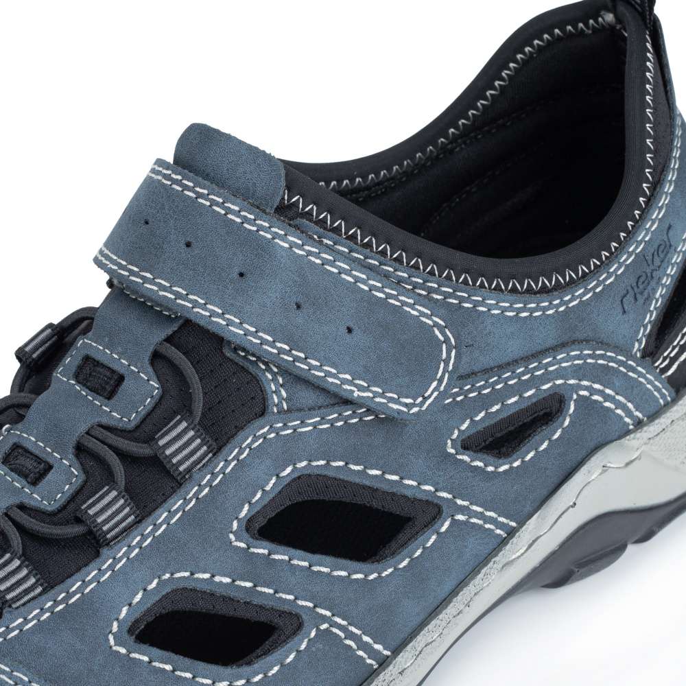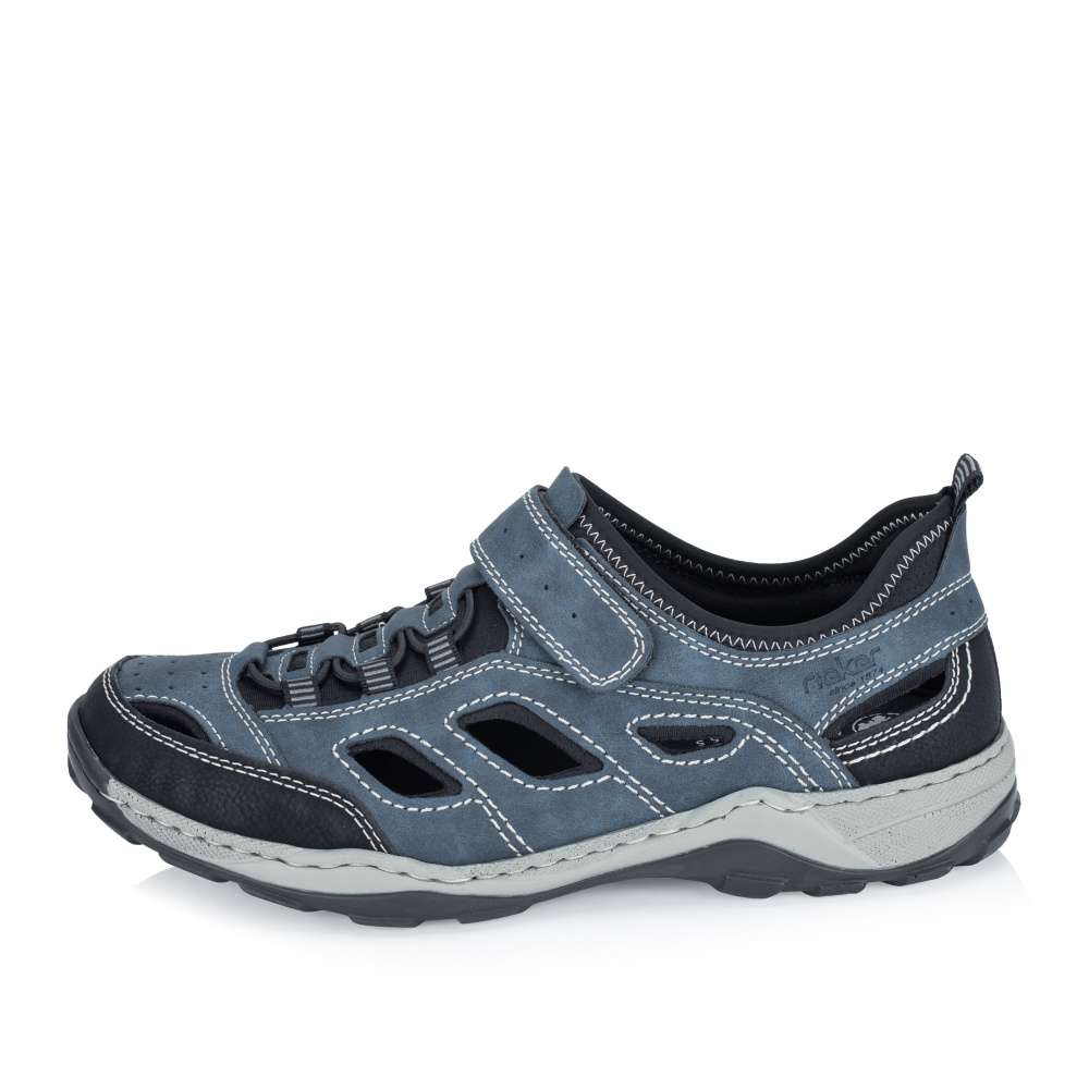 Pohodlí v módním stylu značky RIEKER představují tyto boty, které spojují moderní vzhled a maximální komfort pro každý den. Vzdušné provedení svršku umožňuje ideální cirkulaci vzduchu, díky čemuž zůstanou vaše nohy svěží i během teplejších dní. Pásek přes nárt se suchým zipem v kombinaci s pružnými gumičkami poskytuje dokonalé přizpůsobení chodidlu, snadné obouvání a pohodlné nošení. Každý krok zpříjemňuje flexibilní podešev s technologií RIEKER Antistress, která účinně tlumí nárazy a snižuje únavu nohou i po celodenním nošení. Tyto boty jsou ideálním společníkem pro aktivní muže, kteří chtějí spojit styl, funkčnost a pohodlí – ať už pro běžné nošení do města, na procházky nebo během dovolené.