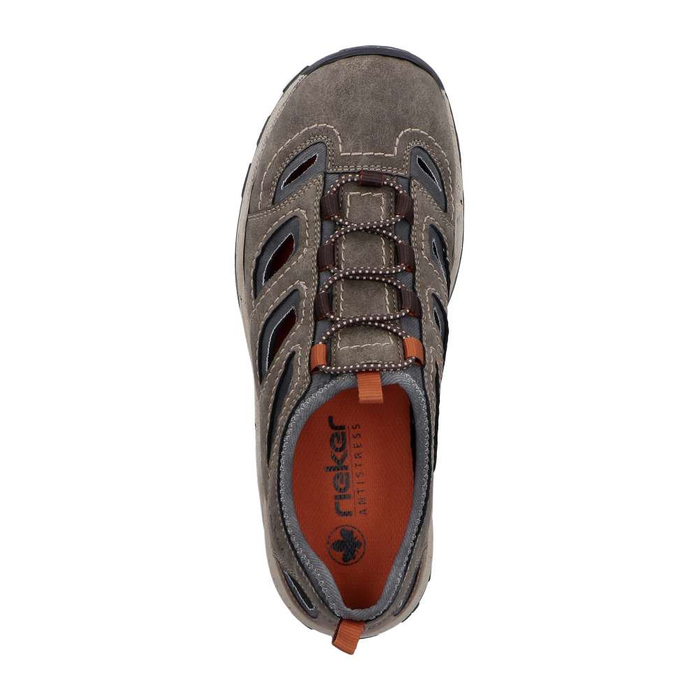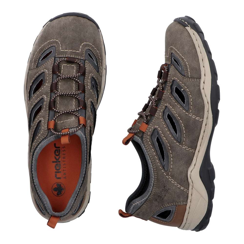 Pohodlí v módním stylu značky RIEKER představují tyto boty, které spojují moderní vzhled a maximální komfort pro každý den. Vzdušné provedení svršku umožňuje ideální cirkulaci vzduchu, díky čemuž zůstanou vaše nohy svěží i během teplejších dní. Pružný lem horního okraje a gumička namísto šněrování poskytují jednoduché nazutí a dokonalé přizpůsobení chodidlu. Každý krok zpříjemňuje flexibilní podešev s technologií RIEKER Antistress, která účinně tlumí nárazy a snižuje únavu nohou i po celodenním nošení. Tyto boty jsou ideálním společníkem pro aktivní muže, kteří chtějí spojit styl, funkčnost a pohodlí – ať už pro běžné nošení do města, na procházky nebo během dovolené.