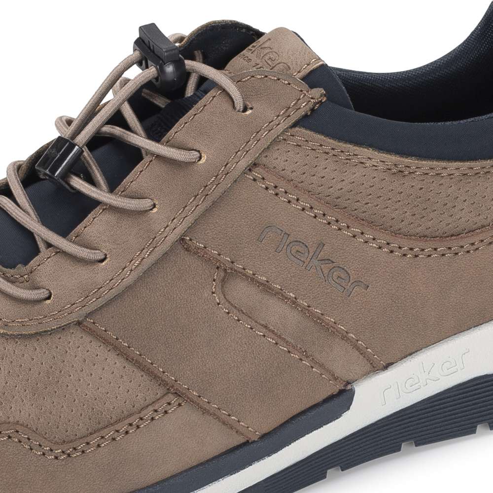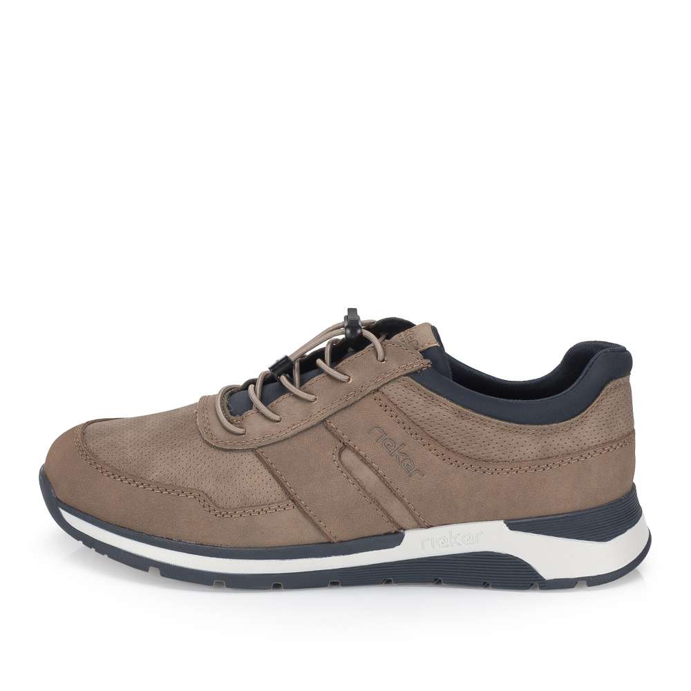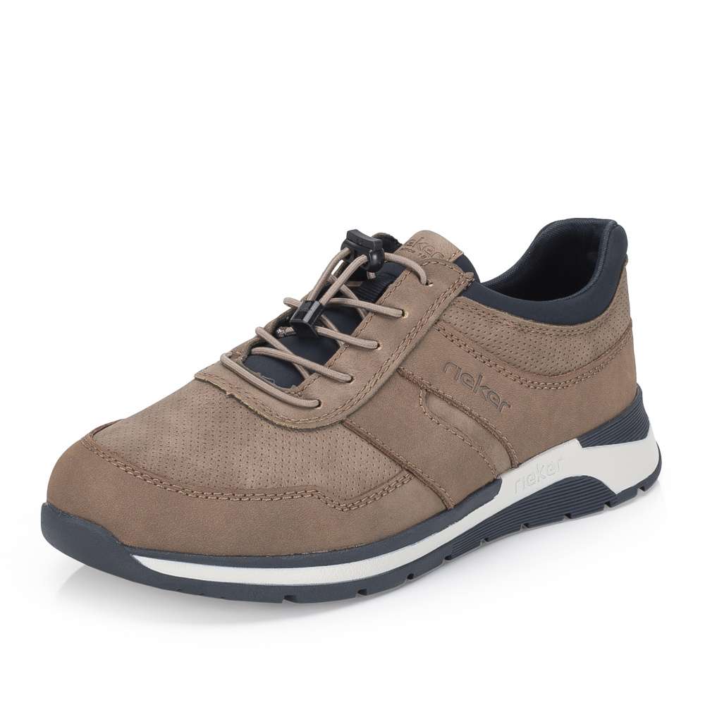 Tento model pánských tenisek RIEKER v kombinaci různých struktur a typů materiálů je stylovým doplňkem pro každý den. Nášivka s logem značky na nártu přidává originální akcent, zatímco šněrování gumičkou se stahujícím prvkem umožňuje snadné přizpůsobení tvaru nohy. Komfortním prvkem je vyjímatelná stélka poskytující pohodlí i pro širší chodidlo, což oceníte při delším nošení. Módní vzhled podtrhne barevně kontrastní podešev, která zvýrazňuje design tenisek, ale také efektivně tlumí nárazy při chůzi a zajišťuje tak optimální komfort. Tyto tenisky skvěle propojují styl s praktickými prvky a jsou ideální volbou pro moderní a pohodlný vzhled.