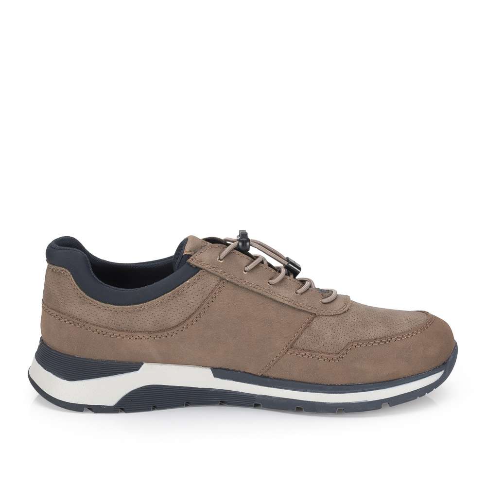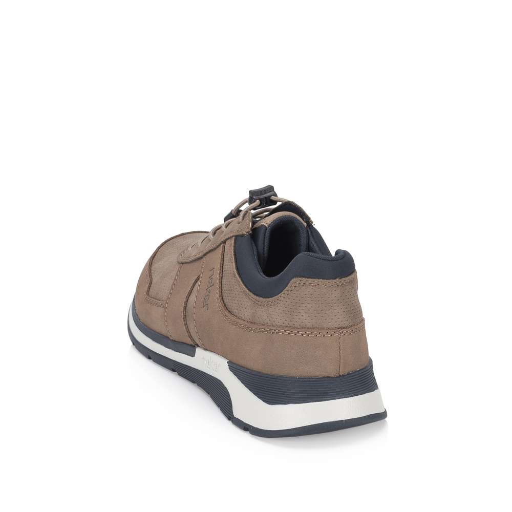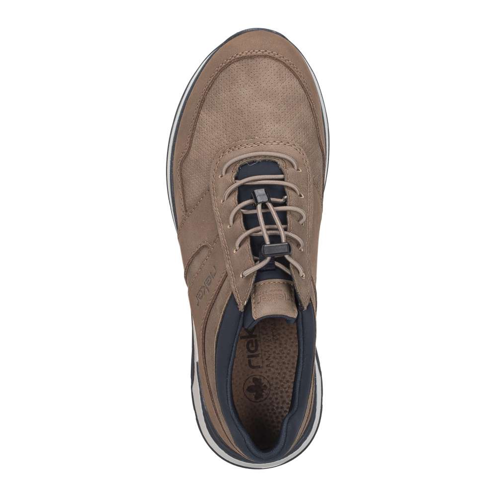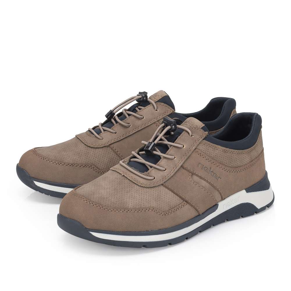 Tento model pánských tenisek RIEKER v kombinaci různých struktur a typů materiálů je stylovým doplňkem pro každý den. Nášivka s logem značky na nártu přidává originální akcent, zatímco šněrování gumičkou se stahujícím prvkem umožňuje snadné přizpůsobení tvaru nohy. Komfortním prvkem je vyjímatelná stélka poskytující pohodlí i pro širší chodidlo, což oceníte při delším nošení. Módní vzhled podtrhne barevně kontrastní podešev, která zvýrazňuje design tenisek, ale také efektivně tlumí nárazy při chůzi a zajišťuje tak optimální komfort. Tyto tenisky skvěle propojují styl s praktickými prvky a jsou ideální volbou pro moderní a pohodlný vzhled.