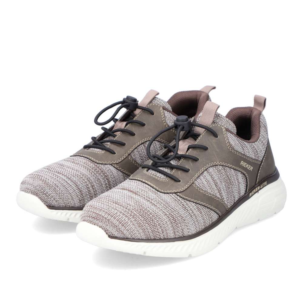 Sportovní tenisky značky RIEKER ve dvou barevných provedení, se určitě stanou Vaší nedílnou součástí. Svršek je kombinován s pružným textilem, proto se perfektně přizpůsobí Vaší noze. Pružné šněrování zajišťuje snadnější nazouvání a upevnění nohy tak, jak je pro Vás příjemné. Měkká stélka a textilní podšívka dělají tuto botu pohodlnou a nezaměnitelnou. K botám si klidně vezměte nějaké pohodlné jeansy a vyrazte na procházku, budete vždy vypadat i cítit se skvěle. Technologie: Antistress – podešev se díky této technologii lehká, flexibilní, absorbuje nárazy při došlapu a snadno se přizpůsobí každé noze.