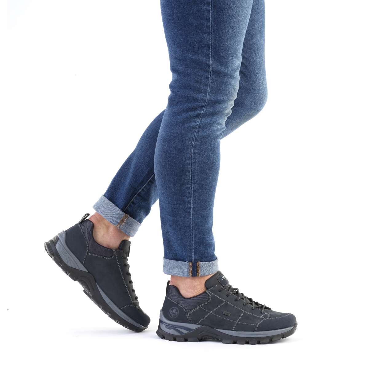 Pokud hledáte obuv na procházky v přírodě, tak tento model značky RIEKER bude tou správnou volbou. Tmavě modrý svršek je ozdoben černými prvky, kontrastním prošíváním, vytlačeným logem značky a textilní částí v oblasti kotníku. Díky šněrování tkaničkami si obuv přizpůsobíte tak, jak potřebujete a TEXová funkční vrstva se postará o to, aby obuv byla nepromokavá, ale přesto prodyšná. Měkká vyjímatelná stélka bude dobrý společník při každém kroku a flexibilní podešev má hrubší vzorek, který Vás podrží i v terénu. Pánskou trekovou obuv využijete jak na běžné procházky, tak na lehkou turistiku. Technologie: Rieker TEX – funkční vrstva, díky které je bota nepromokavá a přesto prodyšná. Tato bota je vybavena vyjímatelnou stélkou. Antistress – podešev je díky této technologii lehká, flexibilní, absorbuje nárazy při došlapu a snadno se přizpůsobí každé noze.