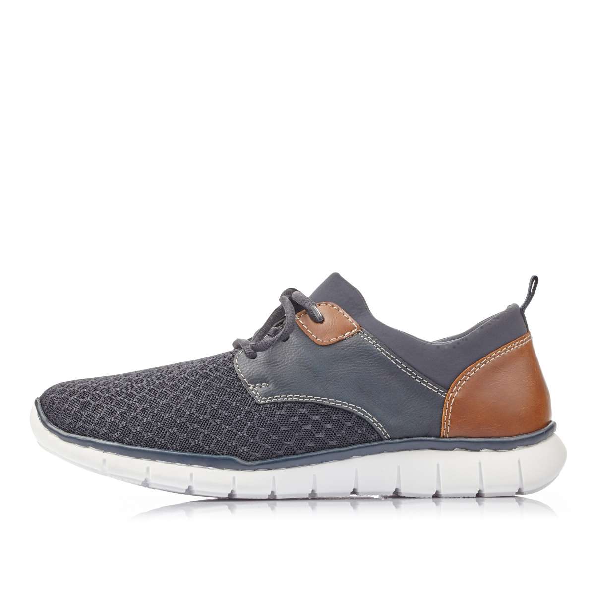 Polobotky v modré barvě jsou zde přímo pro Vás. Unikátní jsou díky síťovině v přední části, ale i modrými a hnědými díly v druhé polovině. Šněrováním si pak obuv upravíte přesně dle svých požadavků. Bílá podešev a kontrastní šití jej doladí k dokonalosti. Tento model je vhodný jak k pracovním povinnostem, tak k volnočasovým procházkám.