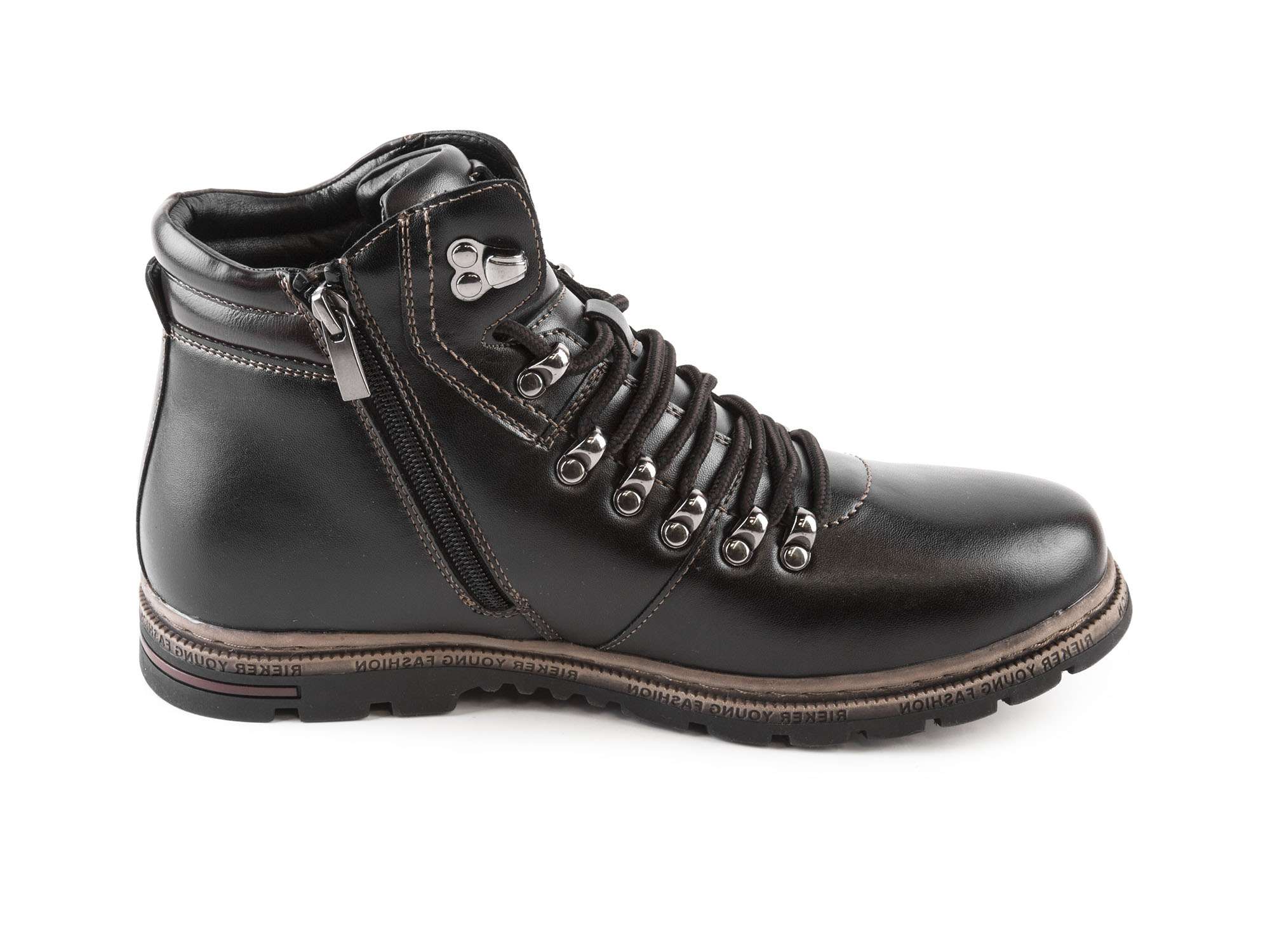 Pánské zimní kotníkové boty se šněrováním a zipem F9811-00 / černá